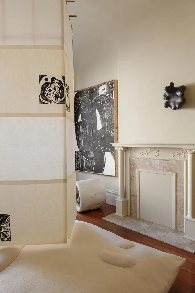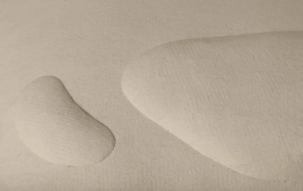 Sheep Floor Pillow designed by Studio Ahead in a collaboration with JG SWITZER. Textured like stones smoothed by water the felted wool fabric is a mix of local fleeces and silk/wool blends. Fabric designed in collaboration JG SWITZER using a felted, appliqué technique. No two pillows alike, as designs are created for each pillow in a random, organic order and milled in Sebastopol workshop. The wool fabric is local Climate Beneficial wool from California and Heritage breeds. This oversized floor cushion comfortably fits 2 people lounging on it. Zipper enclosure allows. Dry Clean only. Insert included. Measures: 60in. Height, 60in. Width dimensions and 8.5in. depth.Custom sizes are available upon request