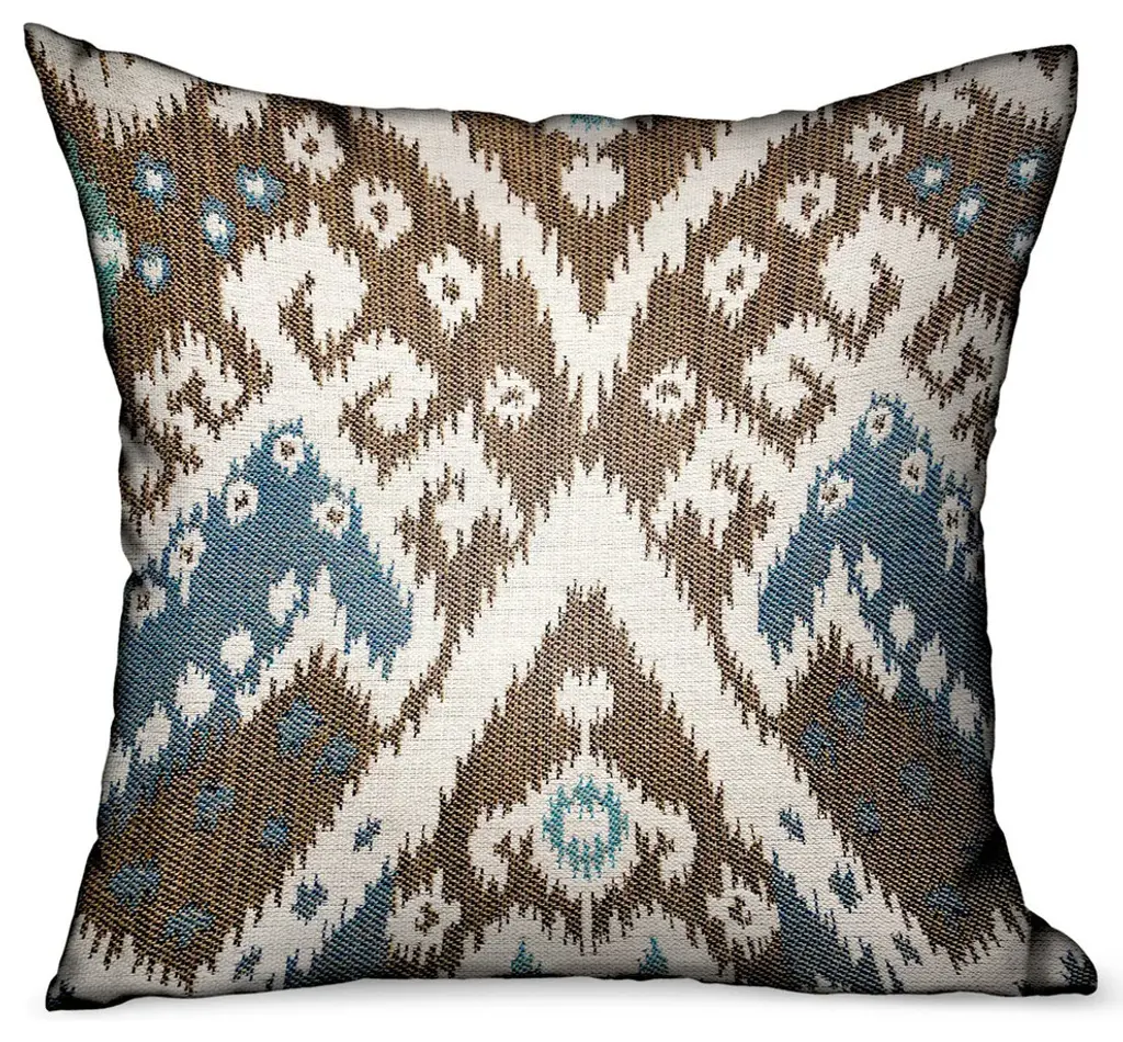 Shoshone Valley Blue Brown Ikat Luxury Outdoor/indoor Throw Pillow 16"x16"