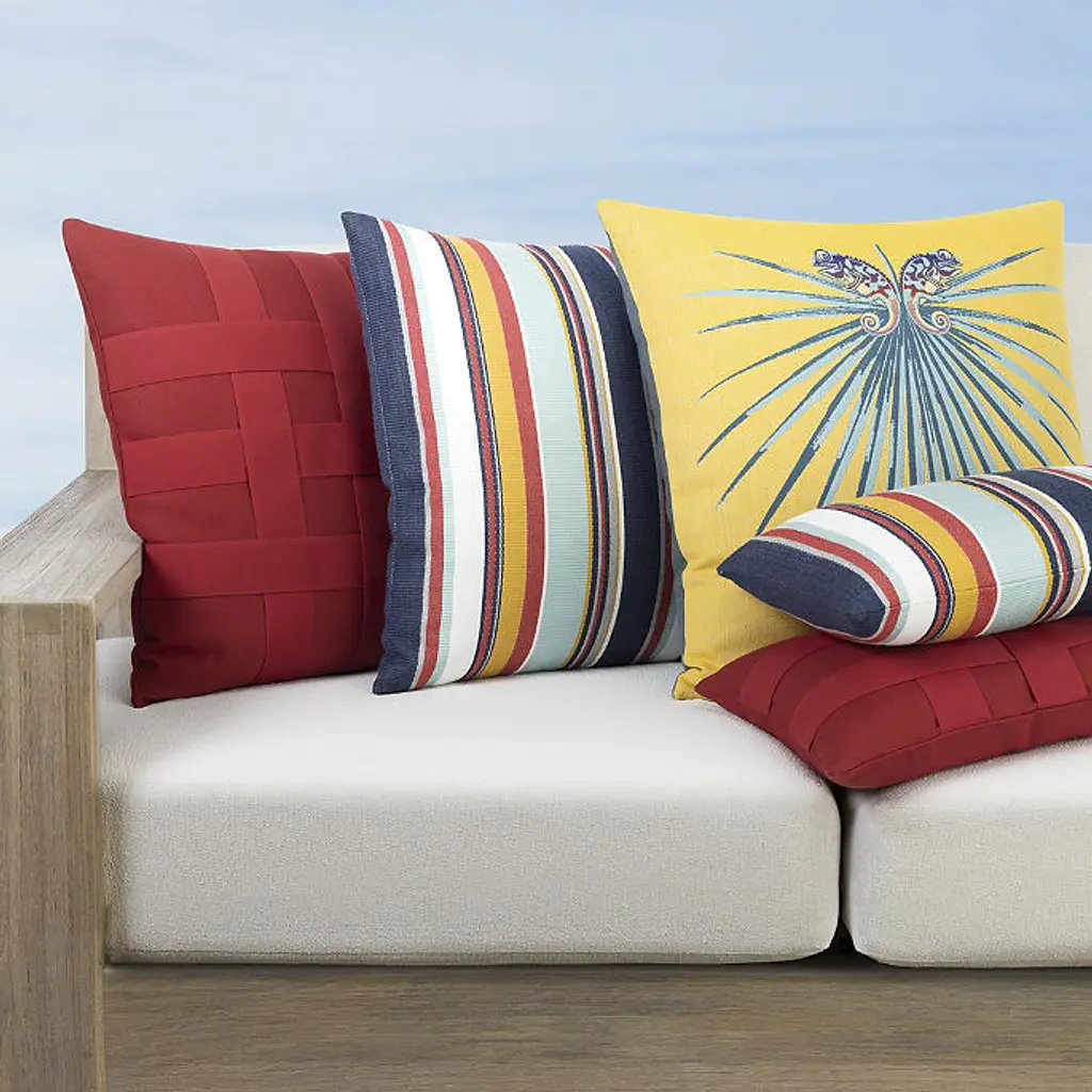 The result of a partnership with designer Elaine Smith, this vibrant design features a colorful stripe pattern and is finished with a knife edge. Soft, lustrous and crafted with all-weather endurance in mind. 100% Sunbrella® solution-dyed acrylic fabricHand-sewnHigh-density, weather-resistant 100% polyester fillFinished with a knife edgeHidden zipper closureSpot clean with mild soap or machine wash in cold water only (do not dry clean); air dryFor indoor or outdoor useMade in USA View this product's law label At Frontgate, our primary focus is quality. We guarantee that every product we sell will stand up to the supreme test – our customers' satisfaction. To learn more about our policies, visit our Shipping & Processing, Returns & Exchanges and Warranty & Price Guarantee pages.