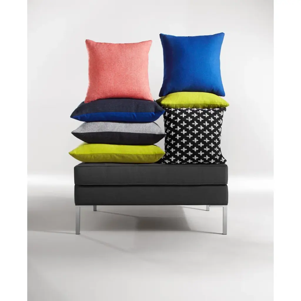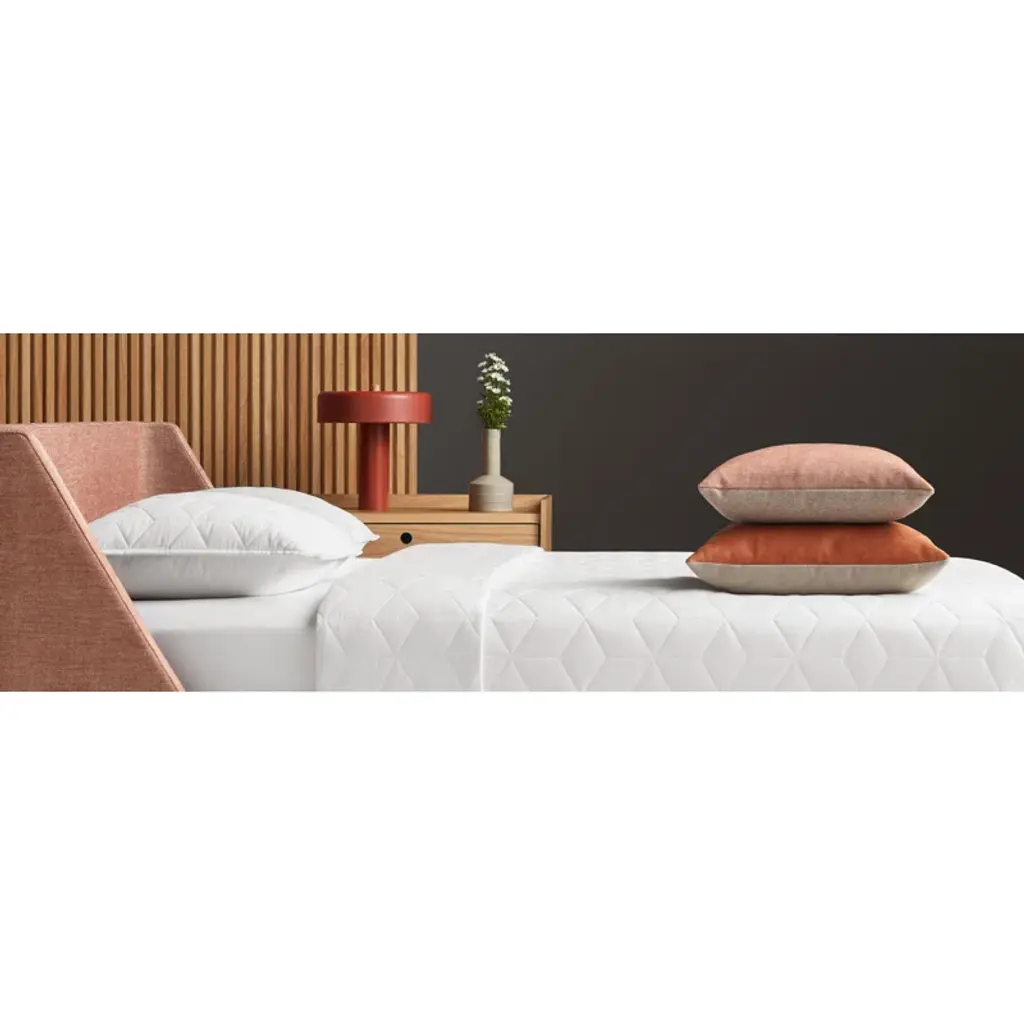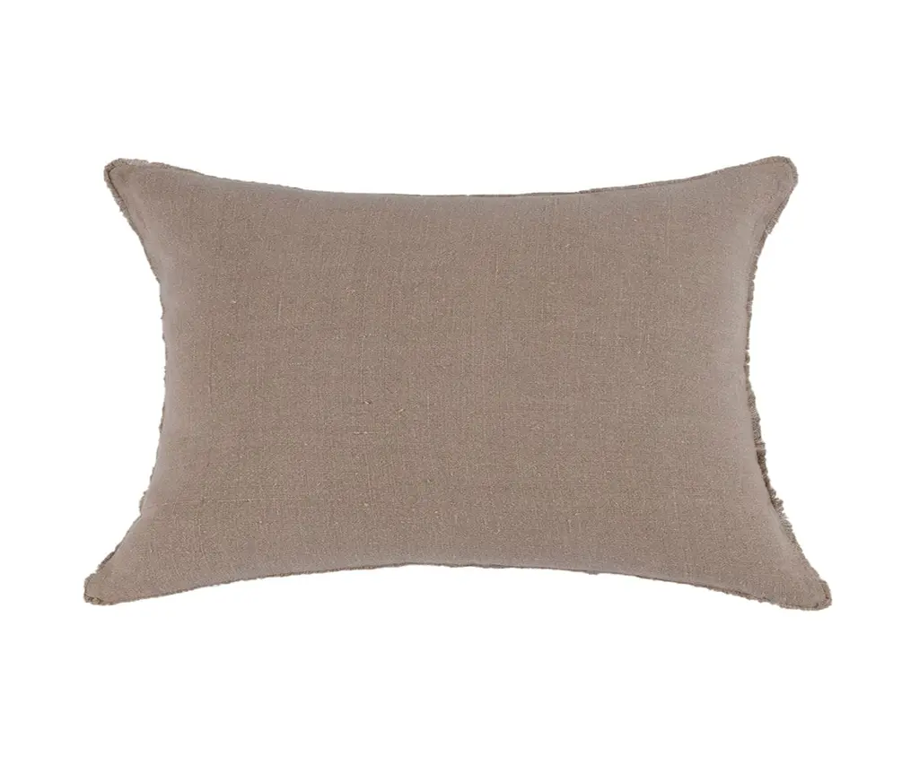 Fiber and feather fill pillows get a two-tone treatment of contrasting fabrics that play nicely together to enliven and soften sofas, lounge chairs, beds, or even the floor.