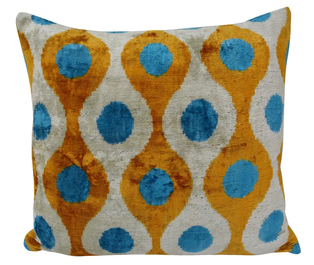 Silk Uzbek Ikat Velvet Hand Made Square Pillow Cushion