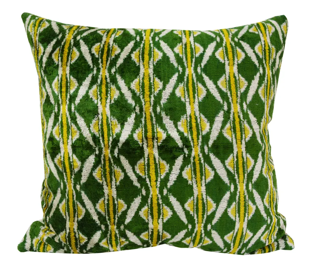 Silk Uzbek Ikat Velvet Hand Made Square Pillow Cushion