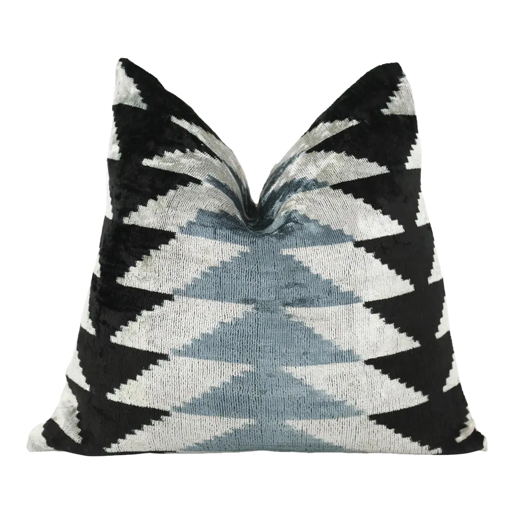 Exquisitely geometric, this plush cushion features comfy padding enveloped in a mesmerizing upholstery in silk and velvet standing out for its extensive motif of specular isosceles trapezoids. The choice of black and white is coherent with its crisp flair and makes the design endlessly versatile. Also available in two variants measuring 40x50cm and 40x60cm, please ask the Concierge for price details.