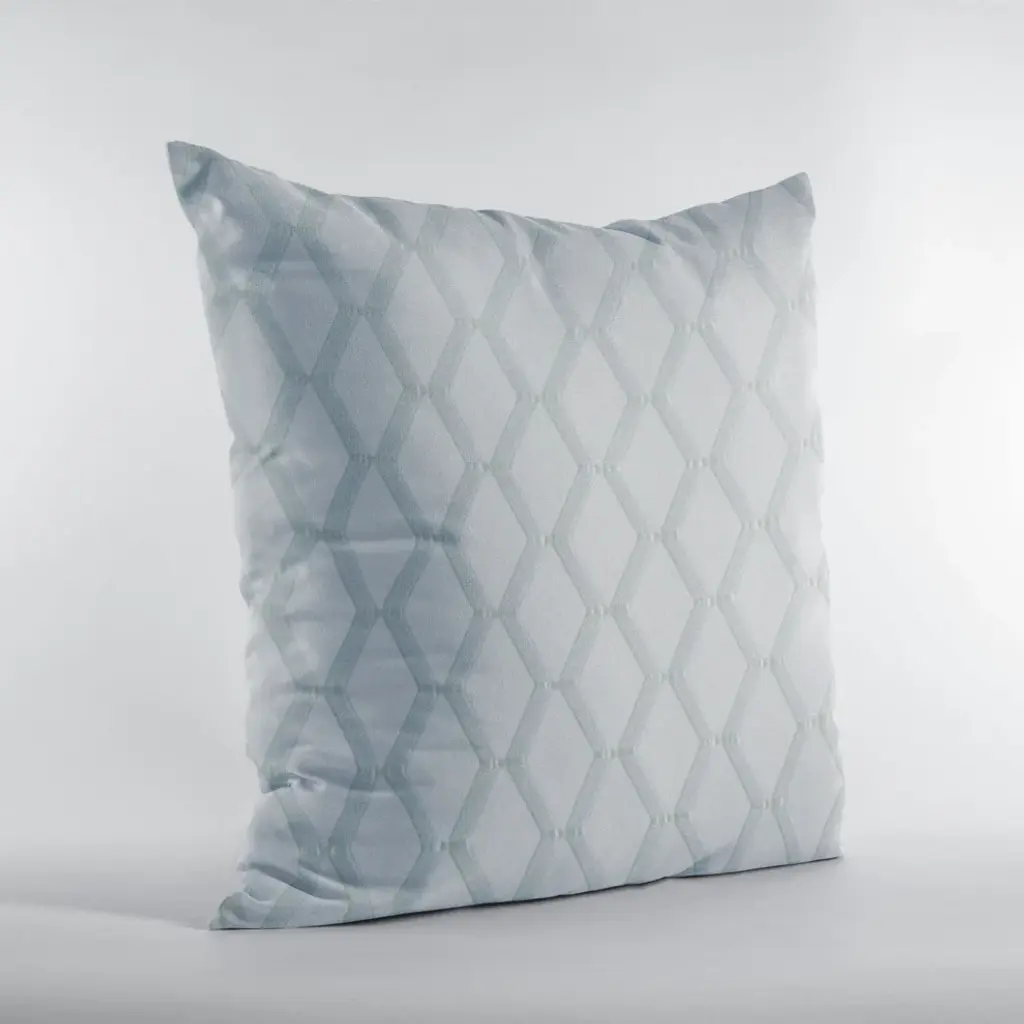 Silver Diamond Shiny Fabric With Embroidery Luxury Throw Pillow, 20"x20"