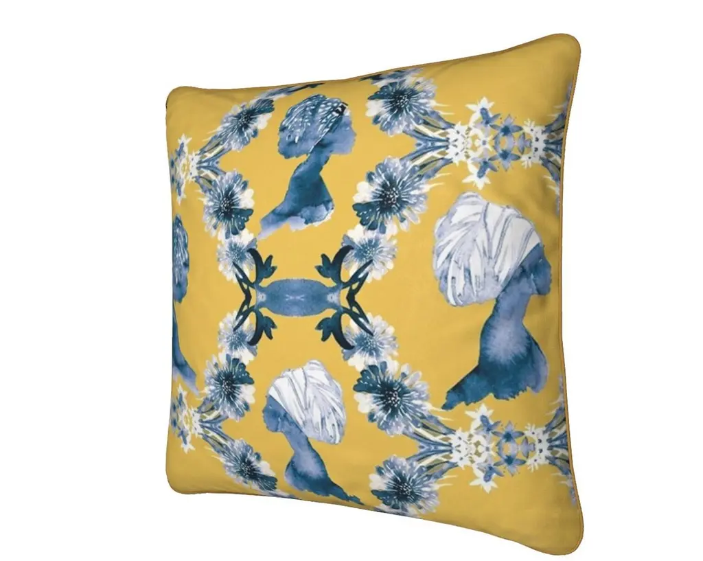 Home is about comfort, a place of peace for mind and body alike. Treat them both by coming home to the Sisters Classic Velvet Pillow. Sustainably and durably made with warm, soft velvet, with a duck feather insert, it’s the perfect cushion to lay back on at the end of a long day. Finished with sophisticated touches like its colorful piping and custom gold zipper, it’s a magazine-worthy addition to any room. When it’s not comforting your body, let the design refresh and renew your spirit. Celebrating at once Black women, their hair, and the wraps that adorn it in places and cultures around the world, Sisters is the perfect note of recognition and memory to welcome you home - because home is about comfort.20" x 20"Soft VelvetSatin PipingDown feather insert Gold zipperDesigned in New YorkSustainably made in the UKCare instructions: Wash at 86°F, low tumble dry heat, hang to dry, do not wring, low heat iron