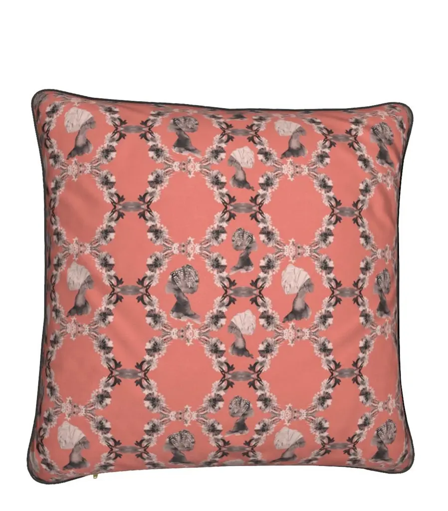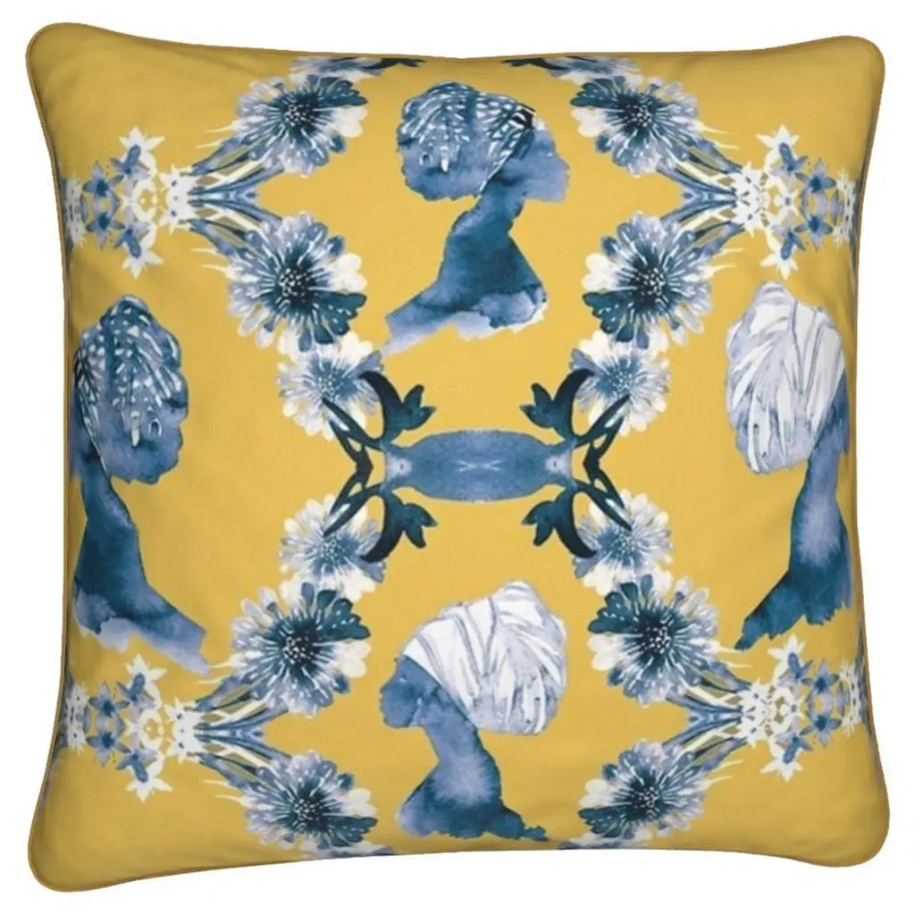 Home is about comfort, a place of peace for mind and body alike. Treat them both by coming home to the Sisters Classic Velvet Pillow. Sustainably and durably made with warm, soft velvet, with a duck feather insert, it’s the perfect cushion to lay back on at the end of a long day. Finished with sophisticated touches like its colorful piping and custom gold zipper, it’s a magazine-worthy addition to any room. When it’s not comforting your body, let the design refresh and renew your spirit. Celebrating at once Black women, their hair, and the wraps that adorn it in places and cultures around the world, Sisters is the perfect note of recognition and memory to welcome you home - because home is about comfort.20" x 20"Soft VelvetSatin PipingDown feather insert Gold zipperDesigned in New YorkSustainably made in the UKCare instructions: Wash at 86°F, low tumble dry heat, hang to dry, do not wring, low heat iron