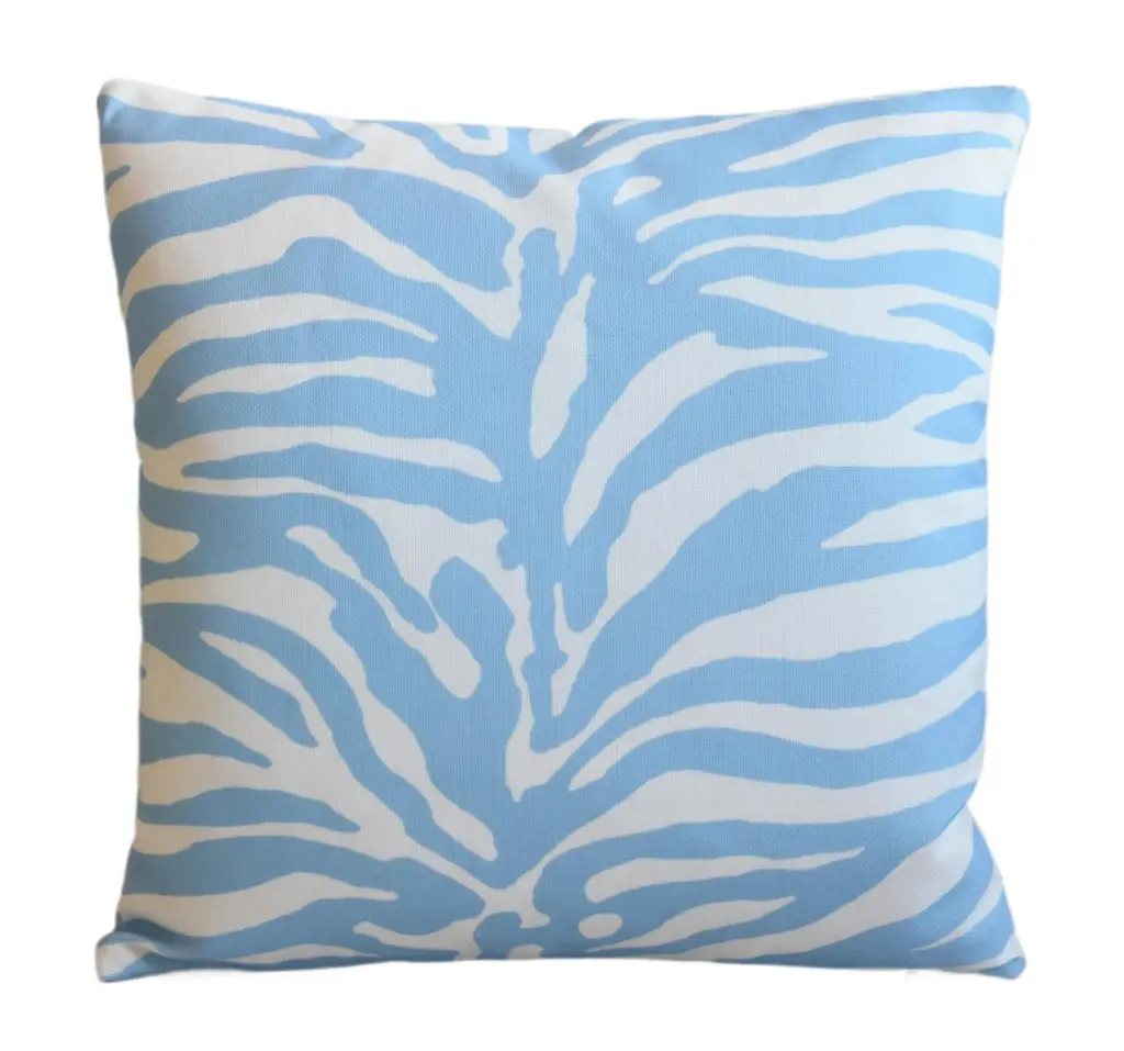 Sky-Blue & White Tiger Animal Stripe Feather/down Pillow 17” Square