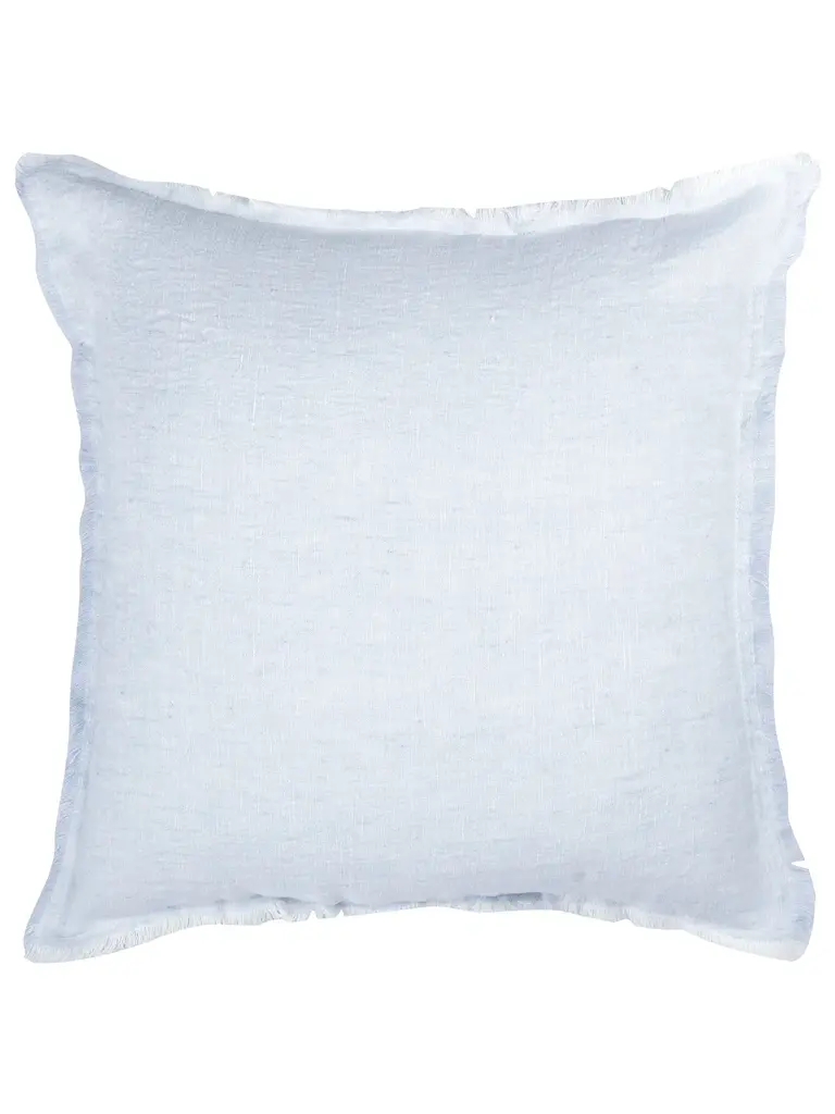 The Sky Blue Fringe Soft Linen Pillow is Soo soft- you won’t believe it's linen! This yarn has a slight nub which gives it a beautiful natural texture. Edges have a self-fringe on all sides. Details Front & Back Color: Sky Blue Front & Back side: 100% Linen (Pre-washed) Concealed zipper closure on back side. Hand washing or a delicate cycle with like colored fabrics recommended. Hang to Dry. Made in India. Pillows are available in 3 options:Pillow Cover Only, with a Down Alternative insert, or with a Down InsertDown Alternative InsertBenefits: Allergen free, Better back support, Retain their shapeInside Fill: 1.2 denier x1.25" polyester gelOuter Shell: 65% polyester/ 35% white cotton blendMade in the USA Down InsertBenefits: Durable, Easy to fluff and re-style, Retains heatInside Fill: 95% gray duck feathers and 5% goose downOuter Shell: 233-thread count 100% cotton fabric Made in the USA