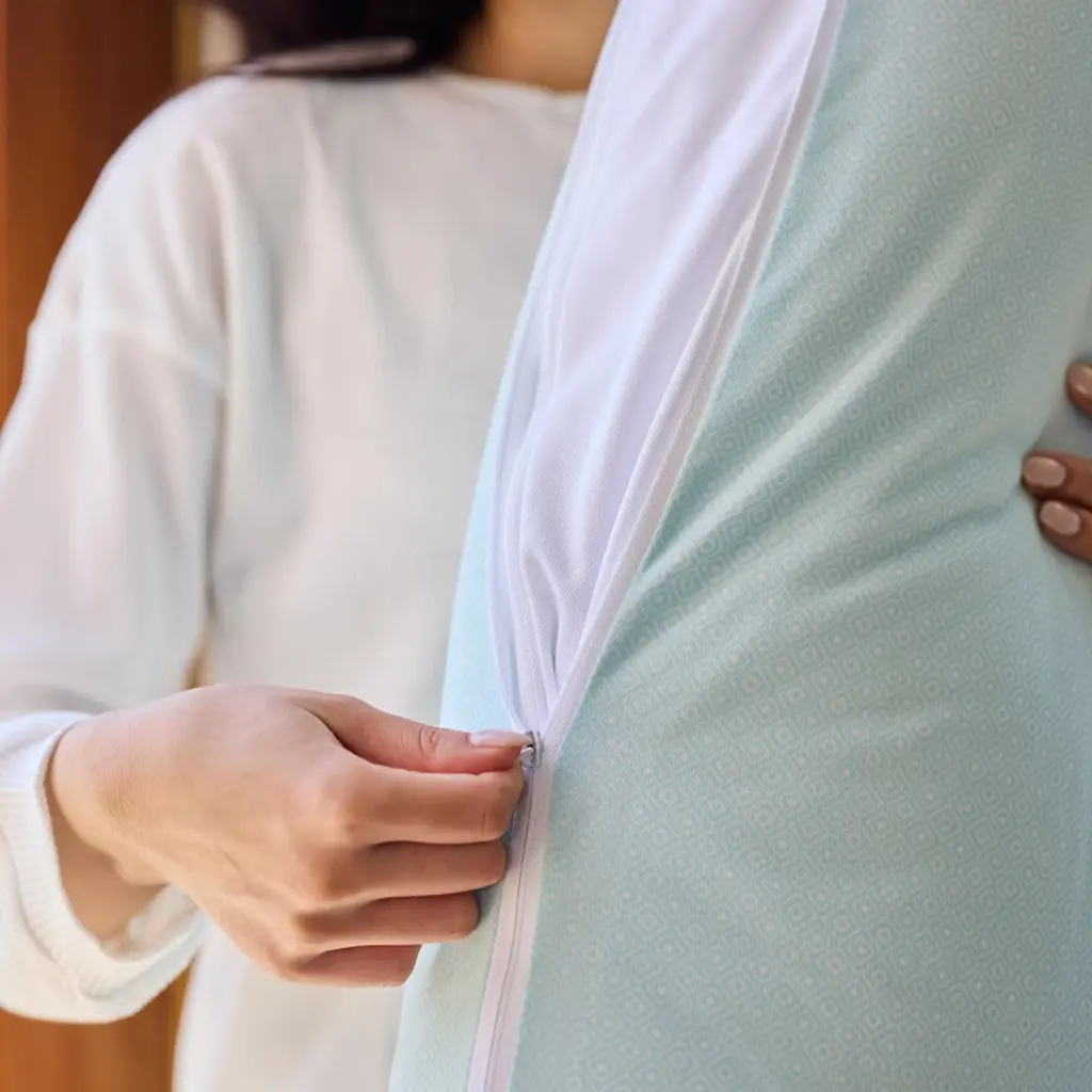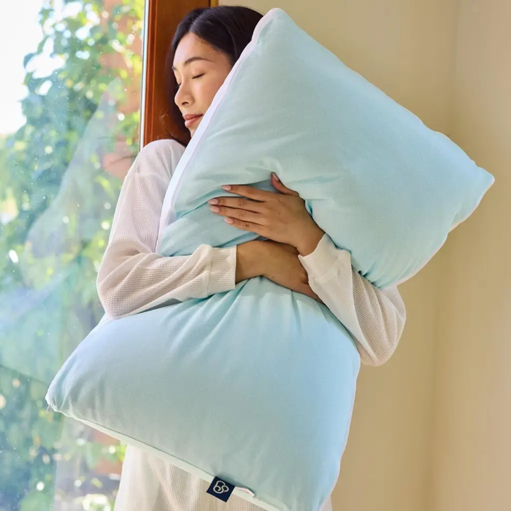 Our Adjustable UltraCool Pillow offers customizable firmness with two inserts and zippered gussets, blending squishy fiberfill with supportive memory foam for cool comfort all night.