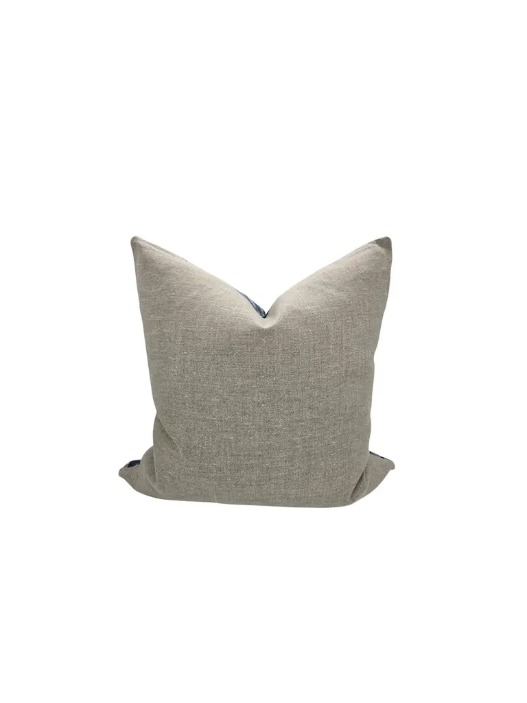 Pair of handcrafted pillows fashioned with Geometric Pattern in charcoal and white fabric on the front and backed in a flax colored linen. Meticulously crafted with serged interior seams, invisible zipper closure, and 95%Feather/5% Down fill insert. Brand new condition.