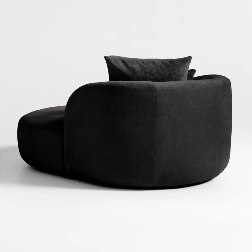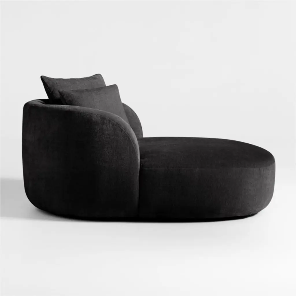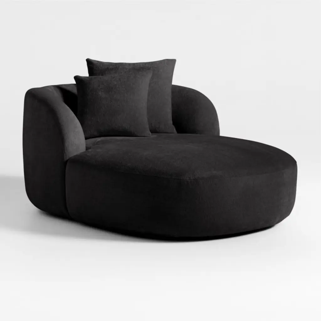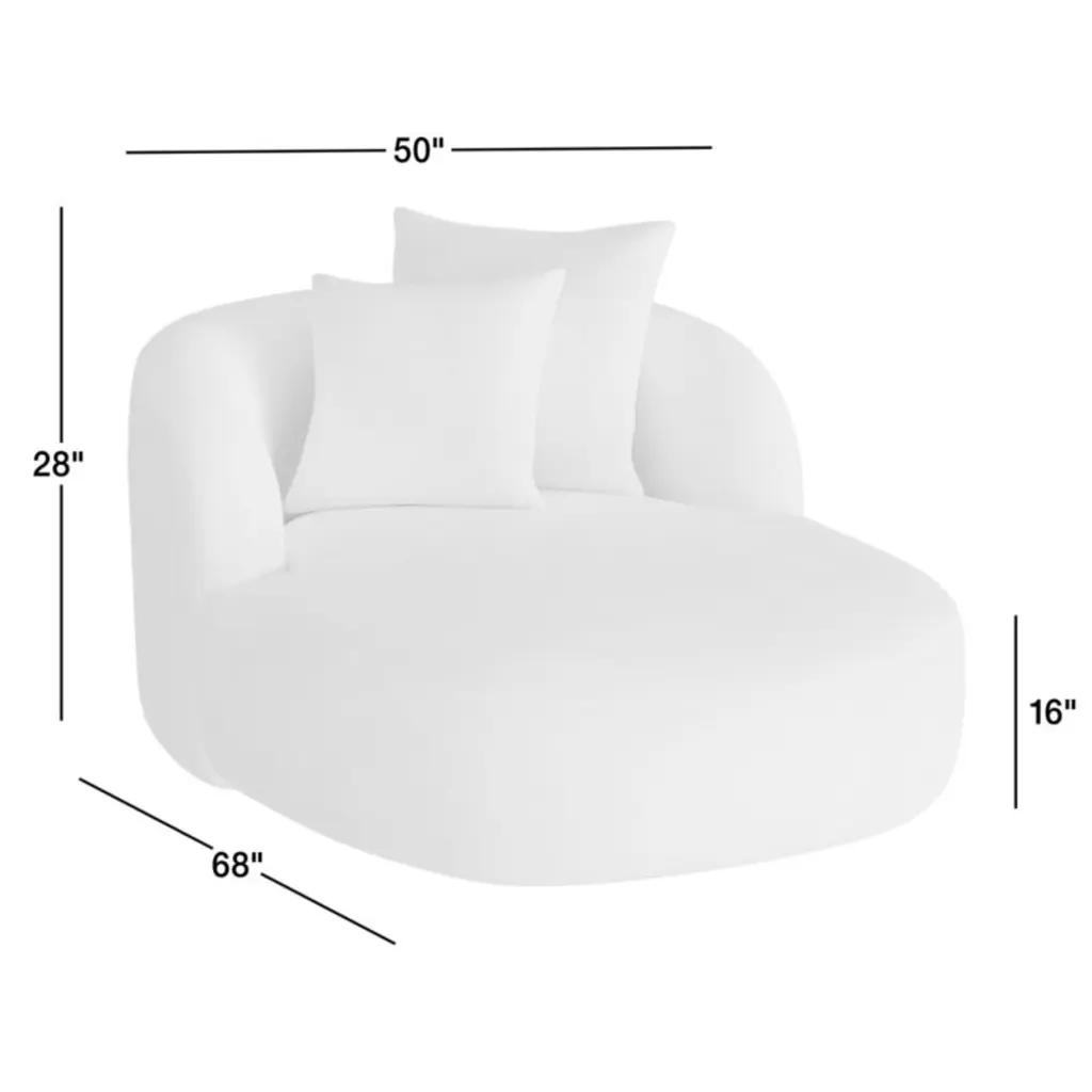 Our Sogno chaise lounge relaxes with oversized proportions and cozy cushioning for a high-design retreat where comfort is king. Styled with rounded contours and continuous curves, the pillowy chaise is upholstered in a fuzzy, high-pile chenille weave. Scaled casual and oversized for extra seating options, the chaise lets you choose your loungepropped up against the armchair back or full-out horizontal. Whichever position you take, two differently sized throw pillows make sure your sit is properly snuggled.