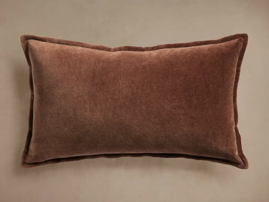 Solid Organic Cotton Velvet 22"x15" Deep Brown Throw Pillow With Feather Insert By Jeremiah Brent