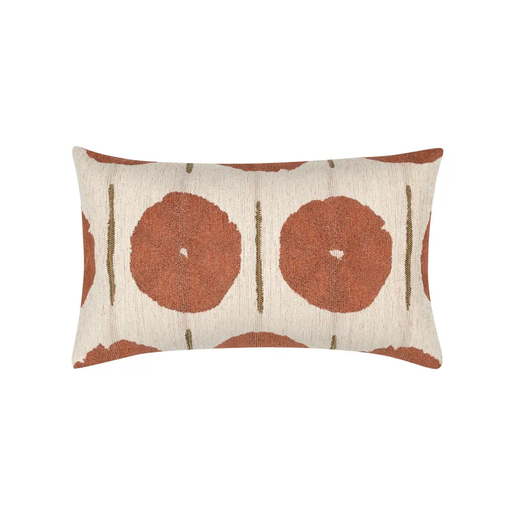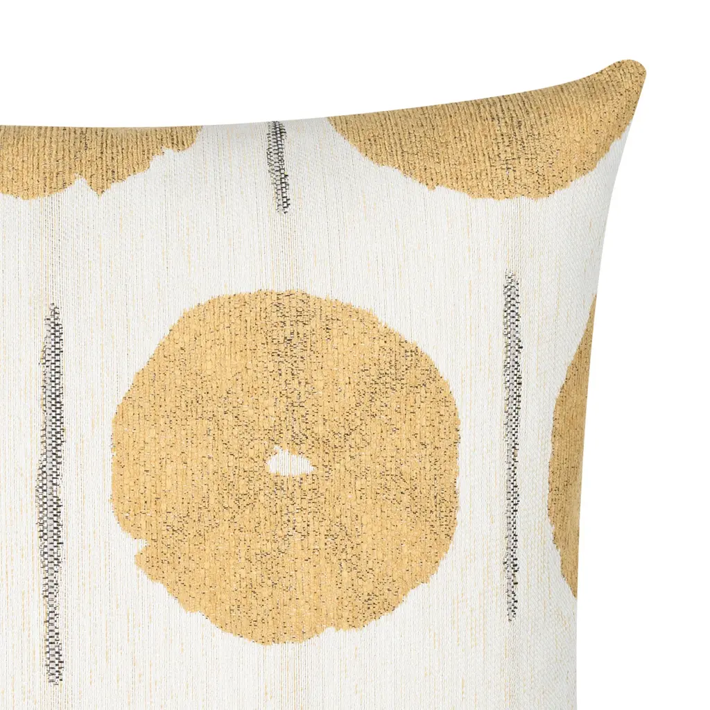 Add a touch of modern art and metallic glamour to your outdoor space with the Solstice Outdoor Pillow from Elaine Smith. Featuring organic circles and painterly lines, the rich colors and soft, natural texture create a striking and elevated design. Ideal for both indoor and outdoor spaces, this durable and soft pillow is an effortless accent in any environment. Highlights