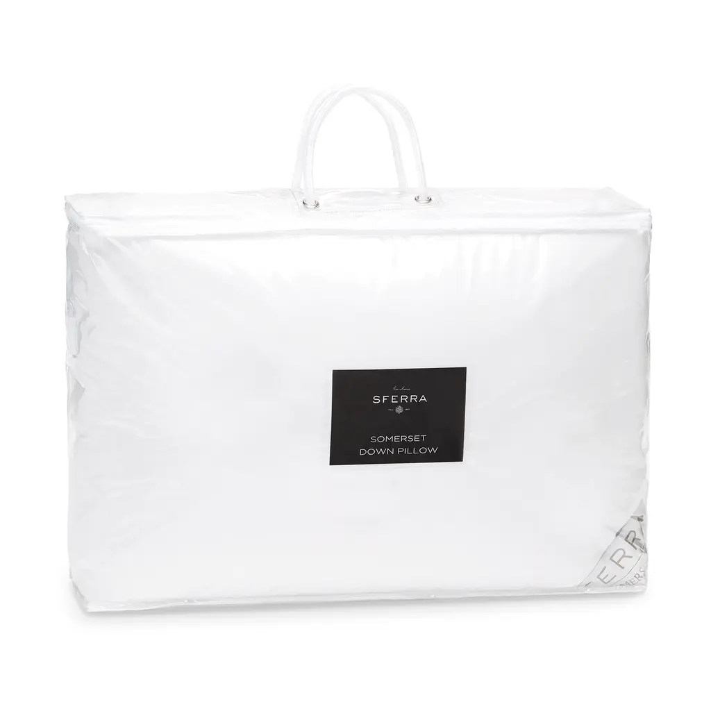 The SFERRA Somerset down pillow is designed to cocoon you in sweet dreams. Carefully constructed of down clusters, which interlock and trap air to keep you warm, but also have the remarkable ability to keep you comfortable, SFERRA down offers varying levels of fill power to customize the perfect sleeping experience. A measure of efficiency, the higher the fill power number, the better the down and the greater its insulating value. With a weight and a loft for everyone, one will be just right for you.