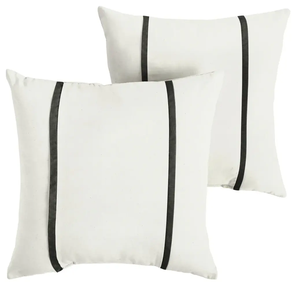Step out on your porch or patio and start brightening it up with this adorable set of two square pillows! Featuring a beautiful solid fabric in a rich, ivory hue, this pillow set is sure to add style to your space and help you enjoy the outdoors so much more! Crafted out of a performance material right here in North America, these pillows are made to withstand the sun, rain and even stains so that all you have to do is sit back and relax! Sunbrella is founded on the belief that fabrics should be both beautiful and functional. We began in the 1960s with the challenge of creating an awning canvas with a substantially longer lifespan than cotton. Sunbrella has become widely adopted for shade structures, marine canvas and upholstery fabric for both outdoor and indoor applications.Our textiles are made with close attention to design detail, and engineered with robust performance characteristics that provide resistance to fading and degradation from sunlight and chemical exposure. The fabric is tactile yet durable, has industry-leading environmental characteristics, is easy to care for and offers long life wherever it''s used.No Sunbrella manufacturing facility in the world sends waste to landfills. A result of our focus on efficiency, this monumental achievement allows Sunbrella to lead by example, putting sustainability into practice every day across the globe. Our unique coloring process not only makes Sunbrella fabrics fade-resistant, it also conserves more water than conventional dyeing processes. At Sunbrella we believe it''s important to preserve the environment around our facilities. We work to conserve the plant and animal life that is native to the area and encourage our employees to plant gardens designed to provide fresh food and nourish local wildlife.We stand behind our fabrics with a guarantee that''s the best in the industry: a 5-year limited warranty for upholstery. This warranty protects the original purchaser of Sunbrella fabric. This warranty protects against Sunbrella fabric becoming unserviceable due to color or strength loss from normal usage and exposure conditions, including sunlight, mildew and atmospheric chemicals.• Ideal for casual indoor and outdoor use• Includes two (2) square pillows• • Available in 16 inch and 20 inch sizes• • • Made in North America•
