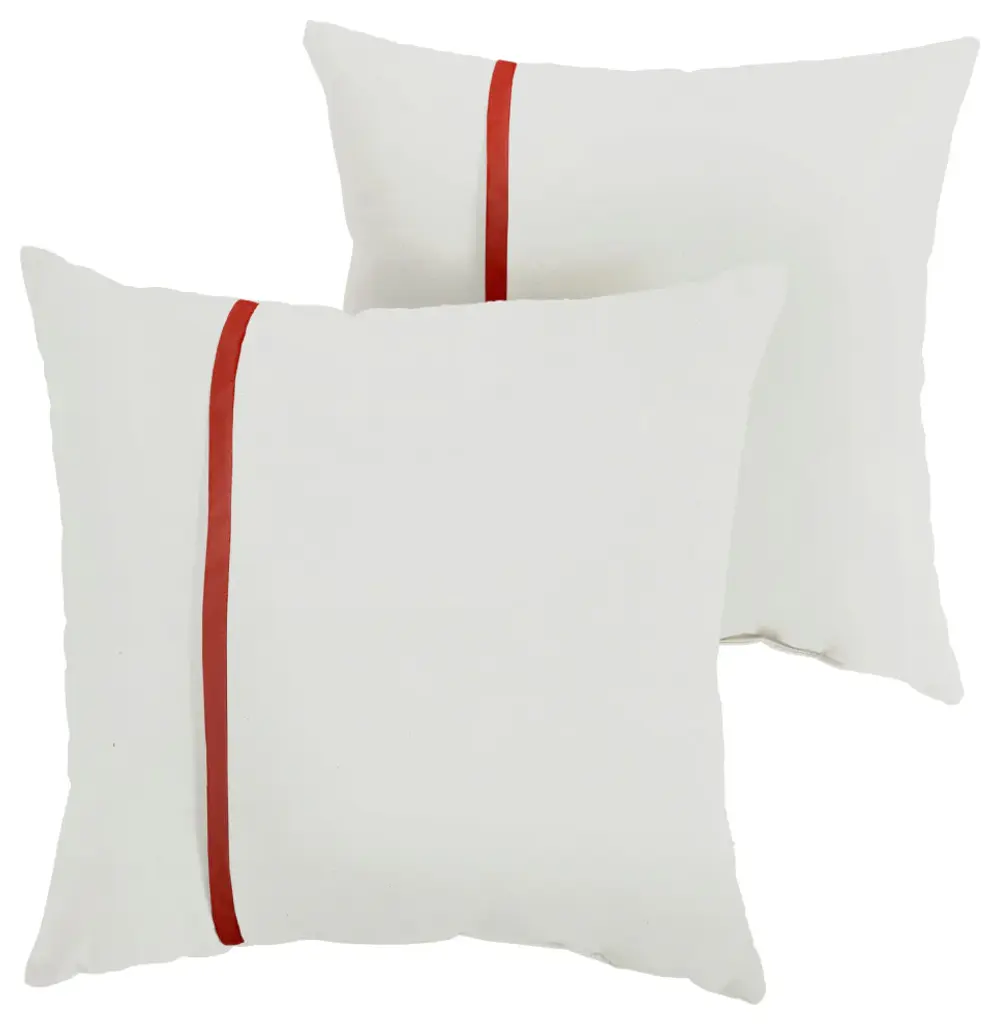 Step out on your porch or patio and start brightening it up with this adorable set of two square pillows! Featuring a beautiful solid fabric in a rich, ivory hue, this pillow set is sure to add style to your space and help you enjoy the outdoors so much more! Crafted out of a performance material right here in North America, these pillows are made to withstand the sun, rain and even stains so that all you have to do is sit back and relax! Sunbrella is founded on the belief that fabrics should be both beautiful and functional. We began in the 1960s with the challenge of creating an awning canvas with a substantially longer lifespan than cotton. Sunbrella has become widely adopted for shade structures, marine canvas and upholstery fabric for both outdoor and indoor applications.Our textiles are made with close attention to design detail, and engineered with robust performance characteristics that provide resistance to fading and degradation from sunlight and chemical exposure. The fabric is tactile yet durable, has industry-leading environmental characteristics, is easy to care for and offers long life wherever it''s used.No Sunbrella manufacturing facility in the world sends waste to landfills. A result of our focus on efficiency, this monumental achievement allows Sunbrella to lead by example, putting sustainability into practice every day across the globe. Our unique coloring process not only makes Sunbrella fabrics fade-resistant, it also conserves more water than conventional dyeing processes. At Sunbrella we believe it''s important to preserve the environment around our facilities. We work to conserve the plant and animal life that is native to the area and encourage our employees to plant gardens designed to provide fresh food and nourish local wildlife.We stand behind our fabrics with a guarantee that''s the best in the industry: a 5-year limited warranty for upholstery. This warranty protects the original purchaser of Sunbrella fabric. This warranty protects against Sunbrella fabric becoming unserviceable due to color or strength loss from normal usage and exposure conditions, including sunlight, mildew and atmospheric chemicals.• Ideal for casual indoor and outdoor use• Includes two (2) square pillows• • Available in 16 inch and 20 inch sizes• • • Made in North America•