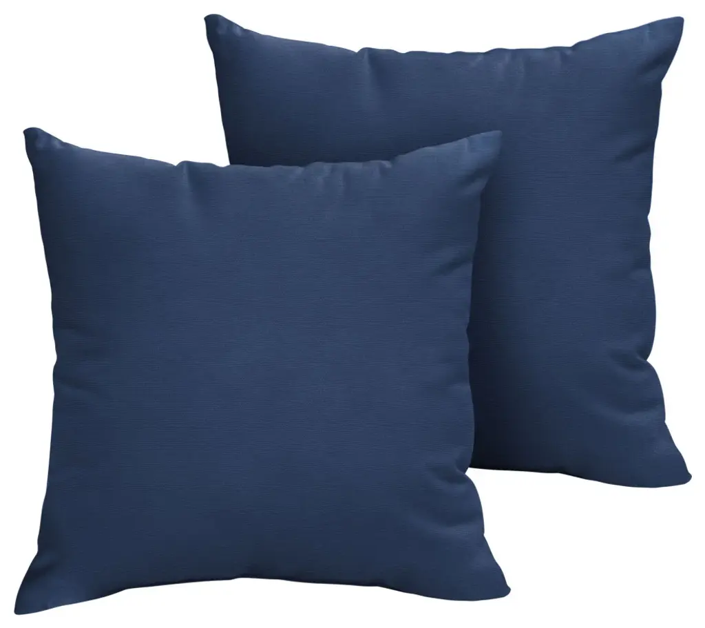 Step out on your porch or patio and start brightening it up with this adorable set of two square pillows! Featuring a beautiful solid fabric in a rich, blue hue, this pillow set is sure to add style to your space and help you enjoy the outdoors so much more! Crafted out of a performance material right here in North America, these pillows are made to withstand the sun, rain and even stains so that all you have to do is sit back and relax! Sunbrella is founded on the belief that fabrics should be both beautiful and functional. We began in the 1960s with the challenge of creating an awning canvas with a substantially longer lifespan than cotton. Sunbrella has become widely adopted for shade structures, marine canvas and upholstery fabric for both outdoor and indoor applications.Our textiles are made with close attention to design detail, and engineered with robust performance characteristics that provide resistance to fading and degradation from sunlight and chemical exposure. The fabric is tactile yet durable, has industry-leading environmental characteristics, is easy to care for and offers long life wherever it''s used.No Sunbrella manufacturing facility in the world sends waste to landfills. A result of our focus on efficiency, this monumental achievement allows Sunbrella to lead by example, putting sustainability into practice every day across the globe. Our unique coloring process not only makes Sunbrella fabrics fade-resistant, it also conserves more water than conventional dyeing processes. At Sunbrella we believe it''s important to preserve the environment around our facilities. We work to conserve the plant and animal life that is native to the area and encourage our employees to plant gardens designed to provide fresh food and nourish local wildlife.We stand behind our fabrics with a guarantee that''s the best in the industry: a 5-year limited warranty for upholstery. This warranty protects the original purchaser of Sunbrella fabric. This warranty protects against Sunbrella fabric becoming unserviceable due to color or strength loss from normal usage and exposure conditions, including sunlight, mildew and atmospheric chemicals.• Ideal for casual indoor and outdoor use• Includes two (2) square pillows• • Available in 16 in, 18 in, 20 in, 22 in, and 24 in sizes• Pillows only. Furniture not included.• • Made in North America•