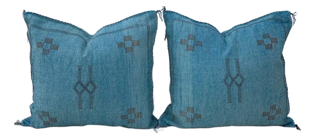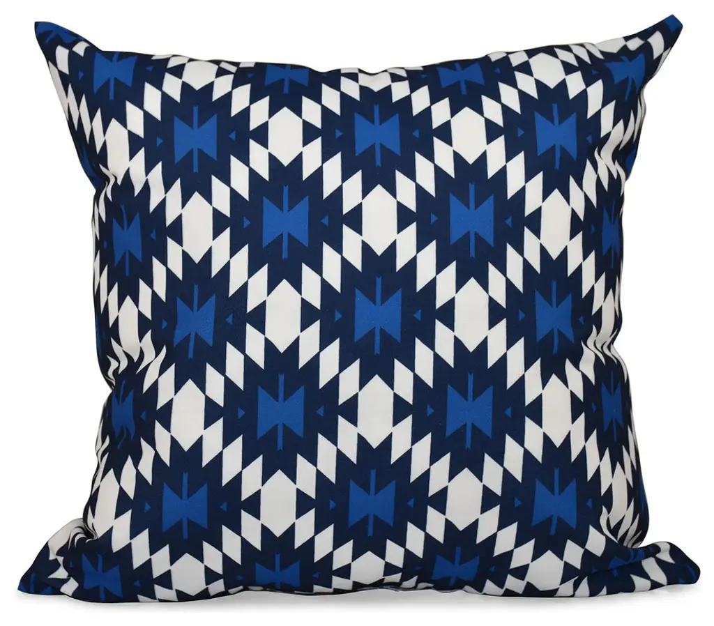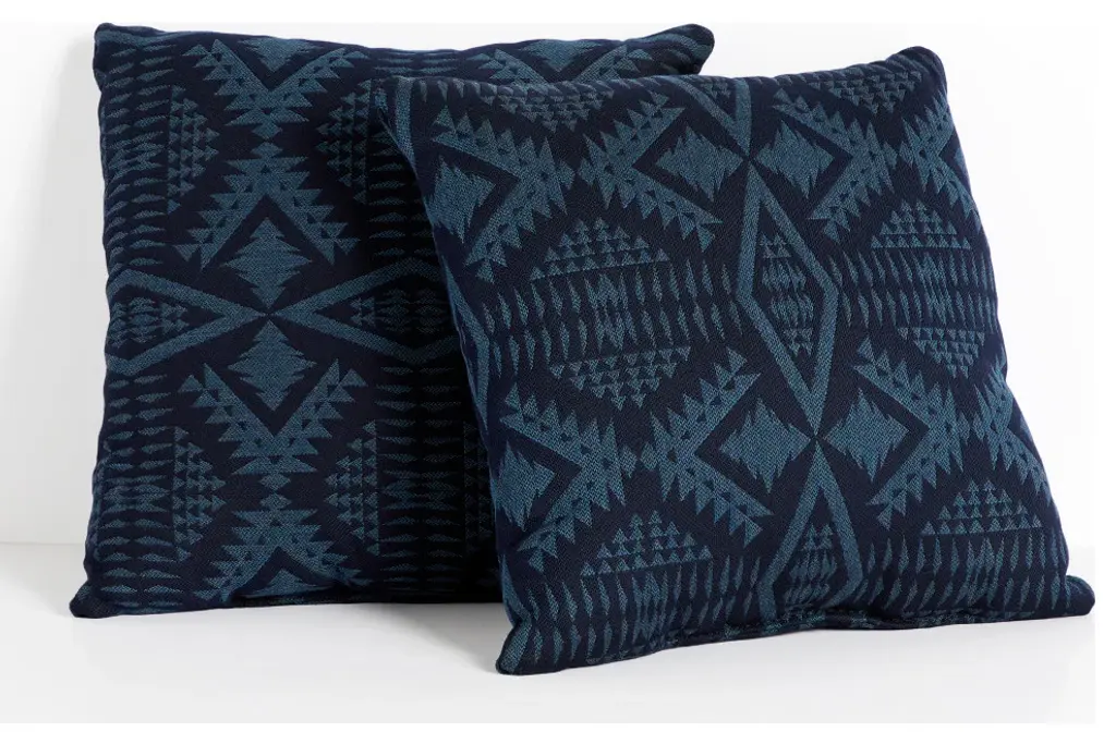 Step out on your porch or patio and start brightening it up with this adorable set of two square pillows! Featuring a beautiful geometric fabric in a rich, blue hue, this pillow set is sure to add style to your space and help you enjoy the outdoors so much more! Crafted out of a performance material right here in North America, these pillows are made to withstand the sun, rain and even stains so that all you have to do is sit back and relax! Sunbrella is founded on the belief that fabrics should be both beautiful and functional. We began in the 1960s with the challenge of creating an awning canvas with a substantially longer lifespan than cotton. Sunbrella has become widely adopted for shade structures, marine canvas and upholstery fabric for both outdoor and indoor applications.Our textiles are made with close attention to design detail, and engineered with robust performance characteristics that provide resistance to fading and degradation from sunlight and chemical exposure. The fabric is tactile yet durable, has industry-leading environmental characteristics, is easy to care for and offers long life wherever it''s used.No Sunbrella manufacturing facility in the world sends waste to landfills. A result of our focus on efficiency, this monumental achievement allows Sunbrella to lead by example, putting sustainability into practice every day across the globe. Our unique coloring process not only makes Sunbrella fabrics fade-resistant, it also conserves more water than conventional dyeing processes. At Sunbrella we believe it''s important to preserve the environment around our facilities. We work to conserve the plant and animal life that is native to the area and encourage our employees to plant gardens designed to provide fresh food and nourish local wildlife.We stand behind our fabrics with a guarantee that''s the best in the industry: a 5-year limited warranty for upholstery. This warranty protects the original purchaser of Sunbrella fabric. This warranty protects against Sunbrella fabric becoming unserviceable due to color or strength loss from normal usage and exposure conditions, including sunlight, mildew and atmospheric chemicals.• Ideal for casual indoor and outdoor use• Includes two (2) square pillows• • Available in 16 in, 18 in, 20 in, 22 in, and 24 in sizes• Pillows only. Furniture not included.• • Made in North America•