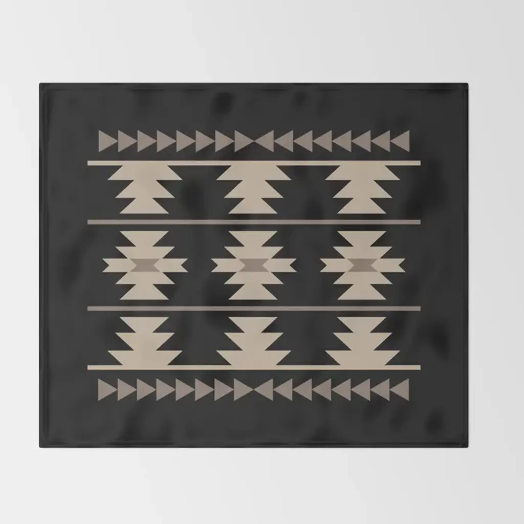Southwestern Pattern 132 Black And Beige Throw Blanket