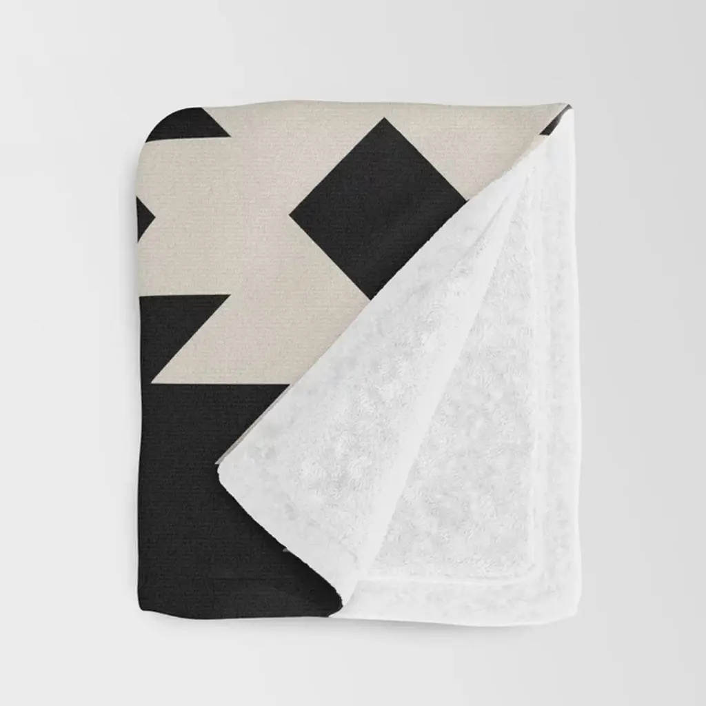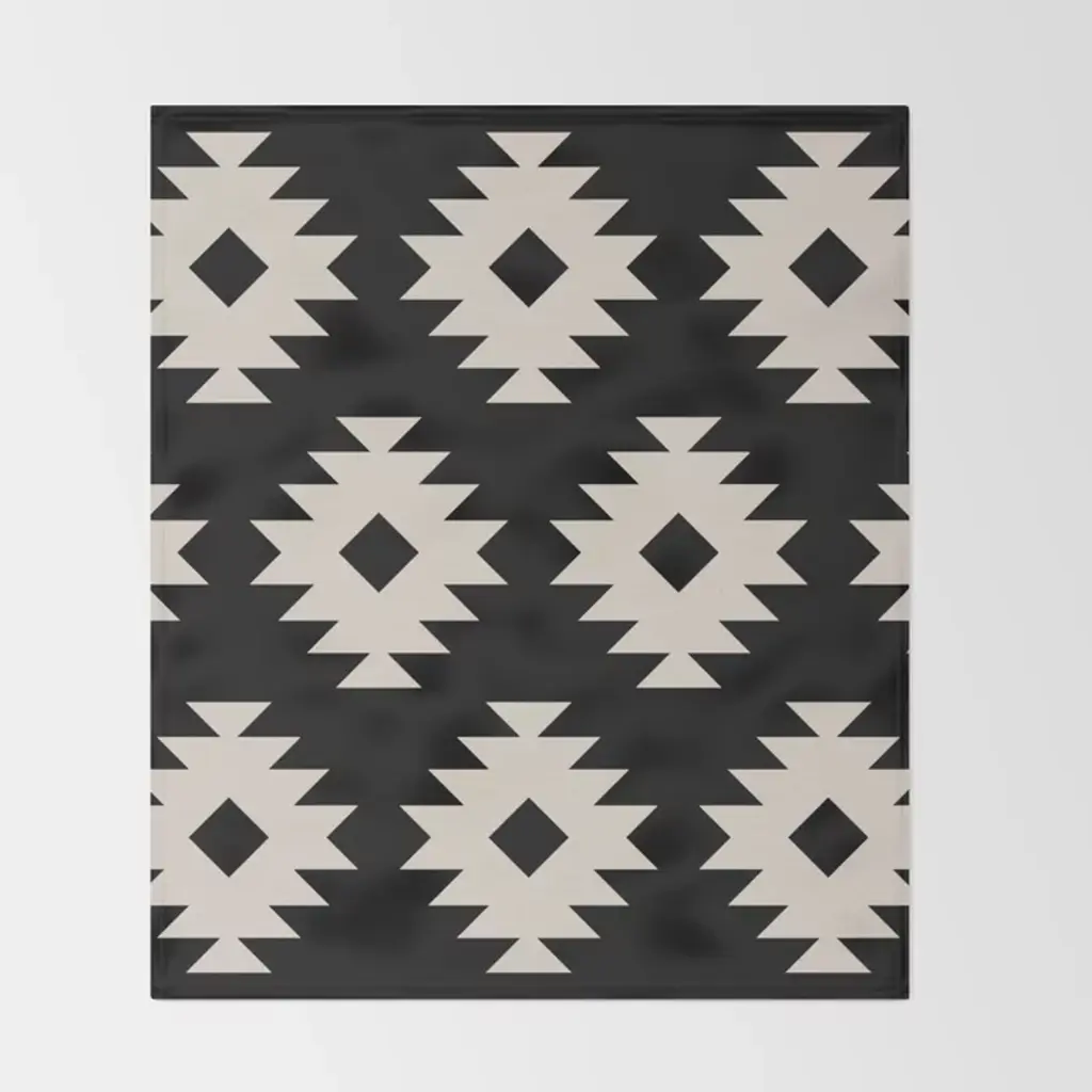 Southwestern Pattern 542 Black And Linen White Throw Blanket