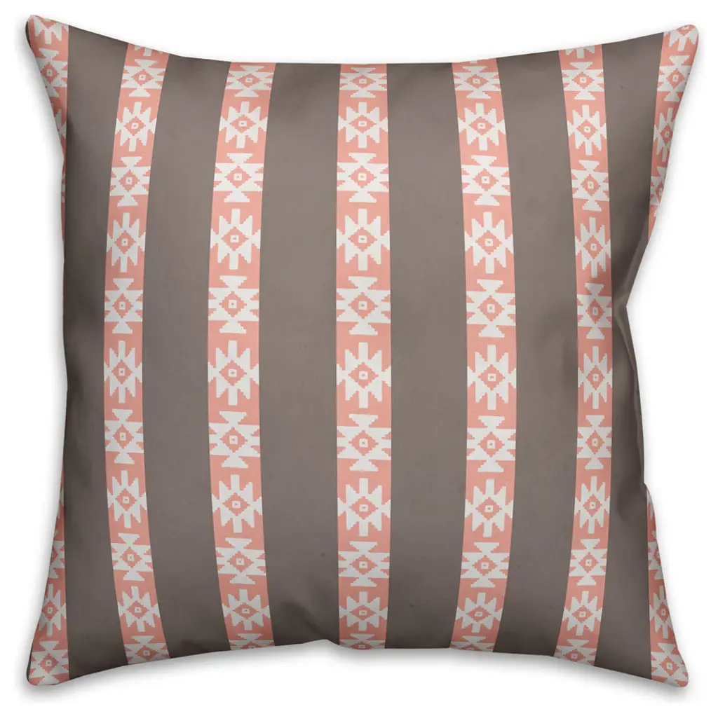 Southwestern Pattern, Pink And Gray Outdoor Throw Pillow, 16"x16"