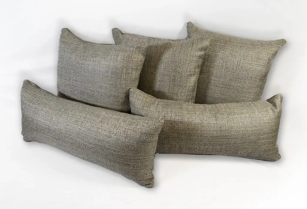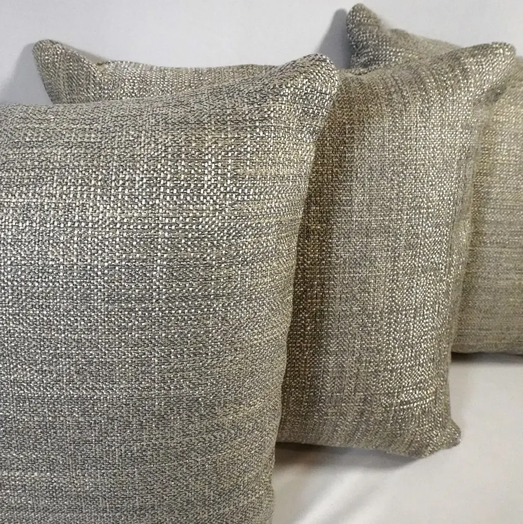 Add a touch of understated luxury to your space with this stunning decorative made from Dedar's fabric 'Sparks' in the color Argento. The fabric, crafted in the Argento colorway, boasts a metallic speckled texture that exudes sophistication and versatility. Known for its durability, this hard-wearing fabric is designed for both decorative and functional use, making it suitable for a variety of interiors. Why we love it: The metallic speckled texture adds an elegant shimmer that elevates any room, while its robust construction ensures longevity. Whether styled on a sofa, bed, or accent chair, this pillow is a chic addition to any space. --- Sparks Argento by Dedar Decorative Pillow Fabric: Sparks by Dedar in color Argento Fabric Content: 43% Polyester, 38% Viscose, 9% Linen, 7% Cotton, 2% Acrylic, 1% Other fibers Edge: Knife Edge Fill: Cluster Fiber *Note: Sizes are approximate and are measured at the seams (corner-to-corner). **This listing is for a single pillow. Care Instructions: • Do not machine wash • Do not chlorinate • Dry clean