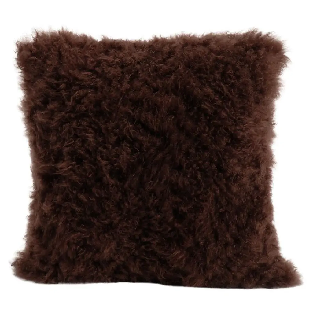Spiced Orange Mongolian Sheepskin 20"x20" Throw Pillow With Down-Alternative Insert