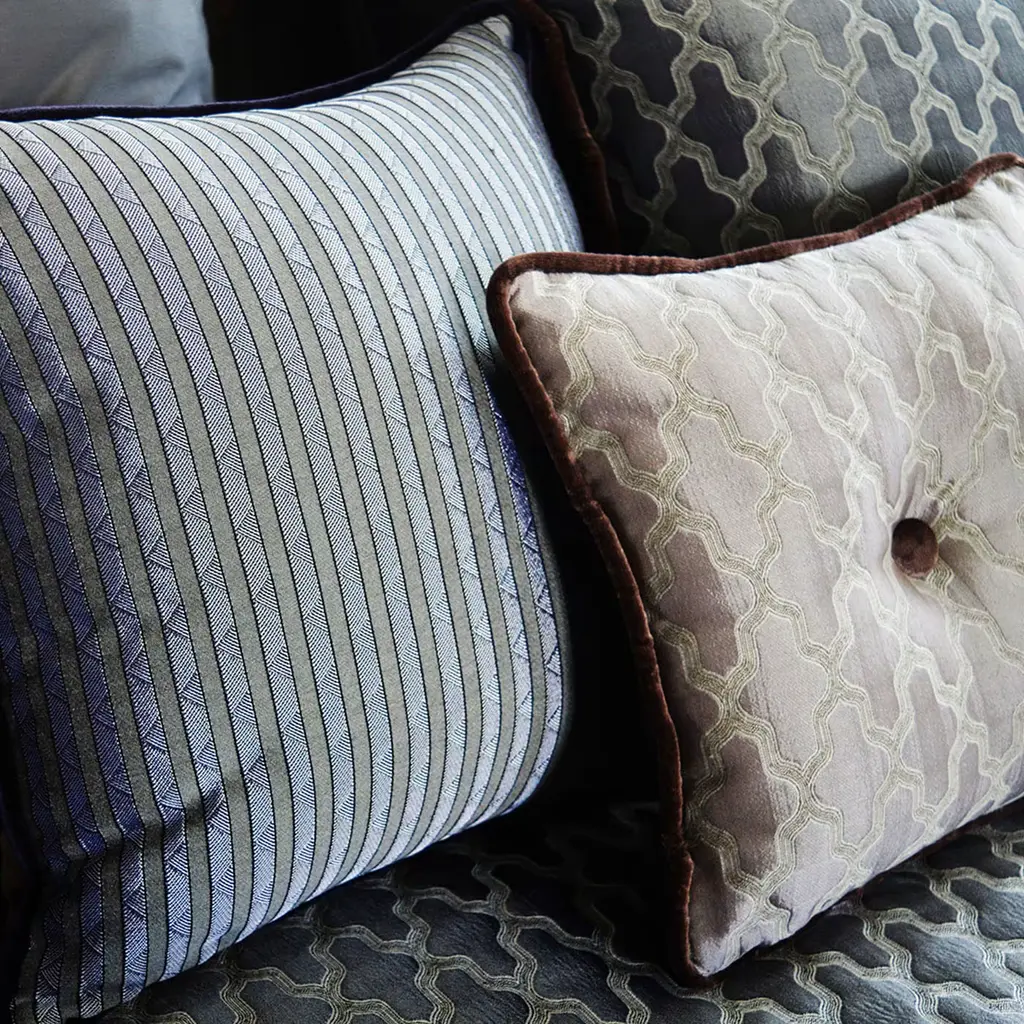 Experience the fusion of tailoring tradition and modern design with a square decorative cushion, perfectly tailored to dress up beds and sofas. The Opificio cushion, crafted in high quality jacquard fabric, is enriched with a piping in silk velvet, reflecting the meticulous attention to detail inherent in the art of tailoring. Made and produced in Italy, each Opificio cushion is a homage to sartorial excellence: fabrics and velvets free from formaldehyde, complete with a zipper and hypoallergenic padding.
