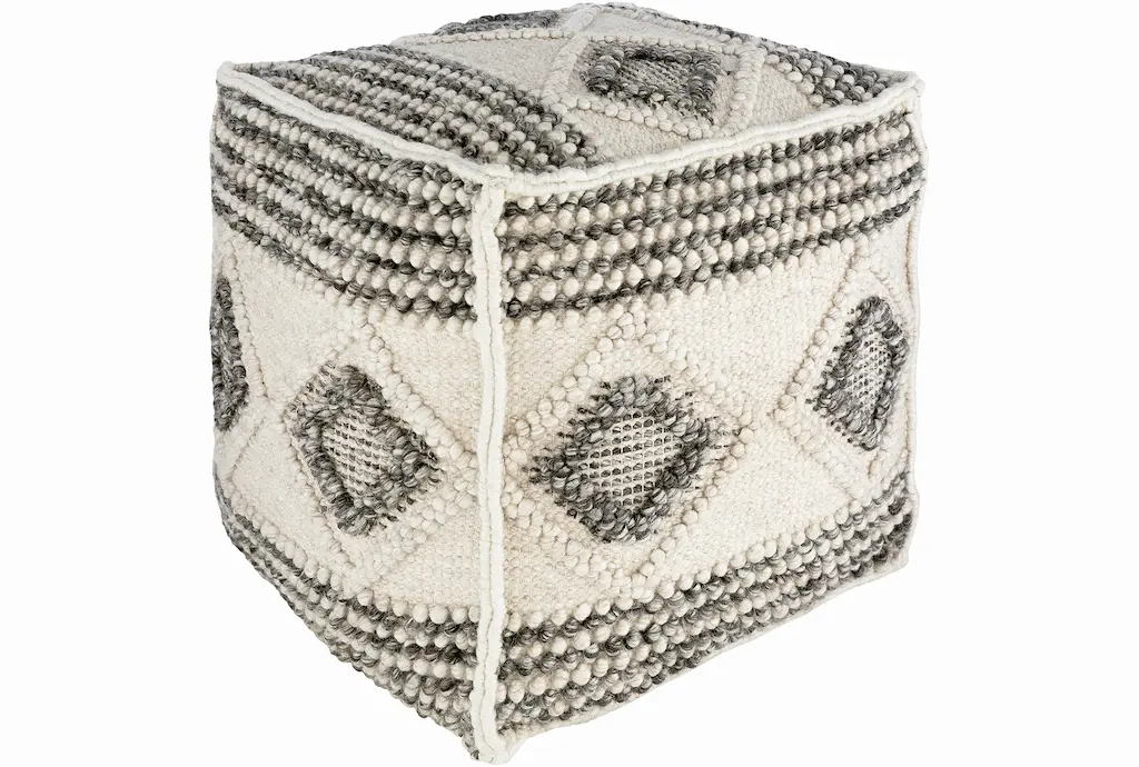 Square Handwoven Stripe Loop Ottoman Pouf, 22 X 22 In