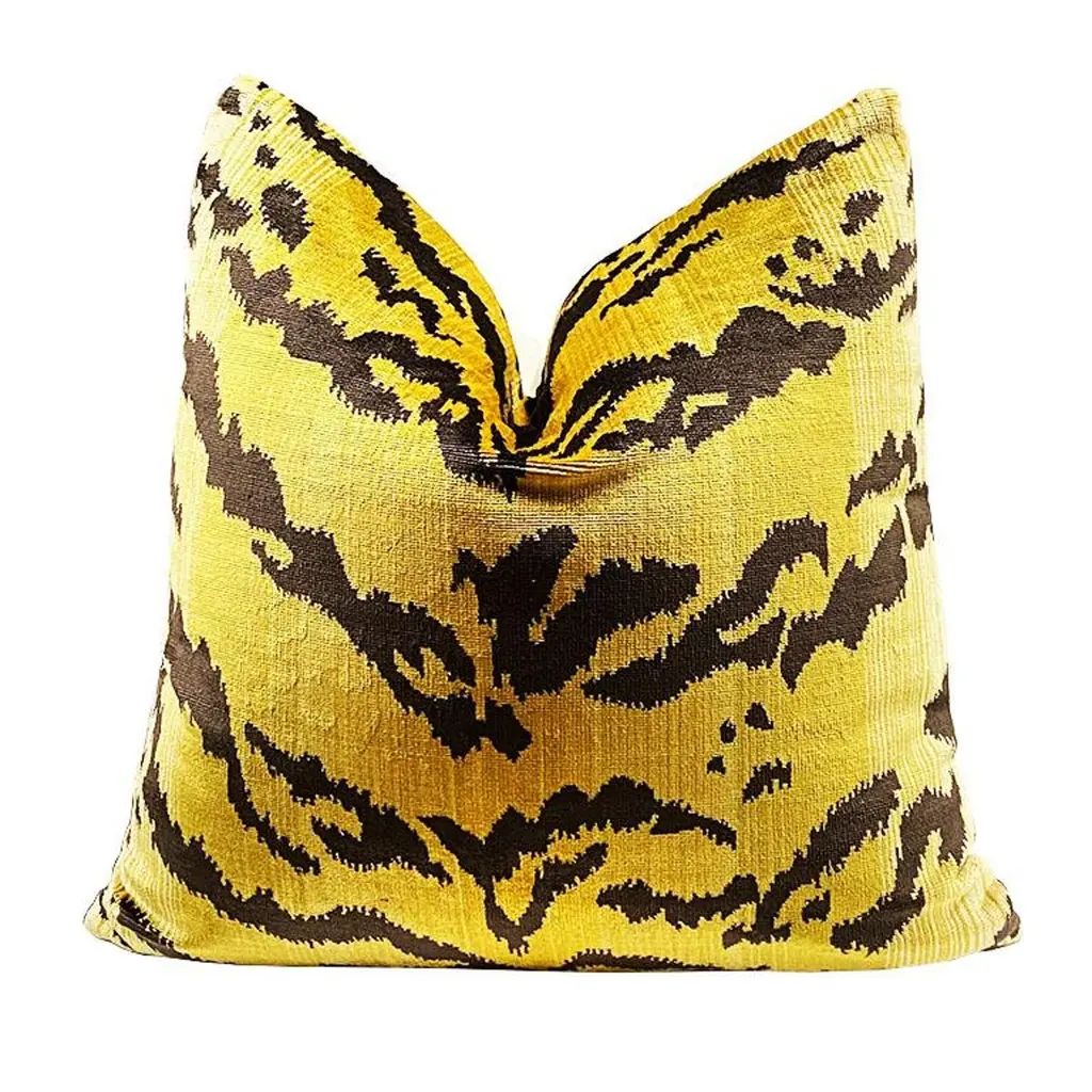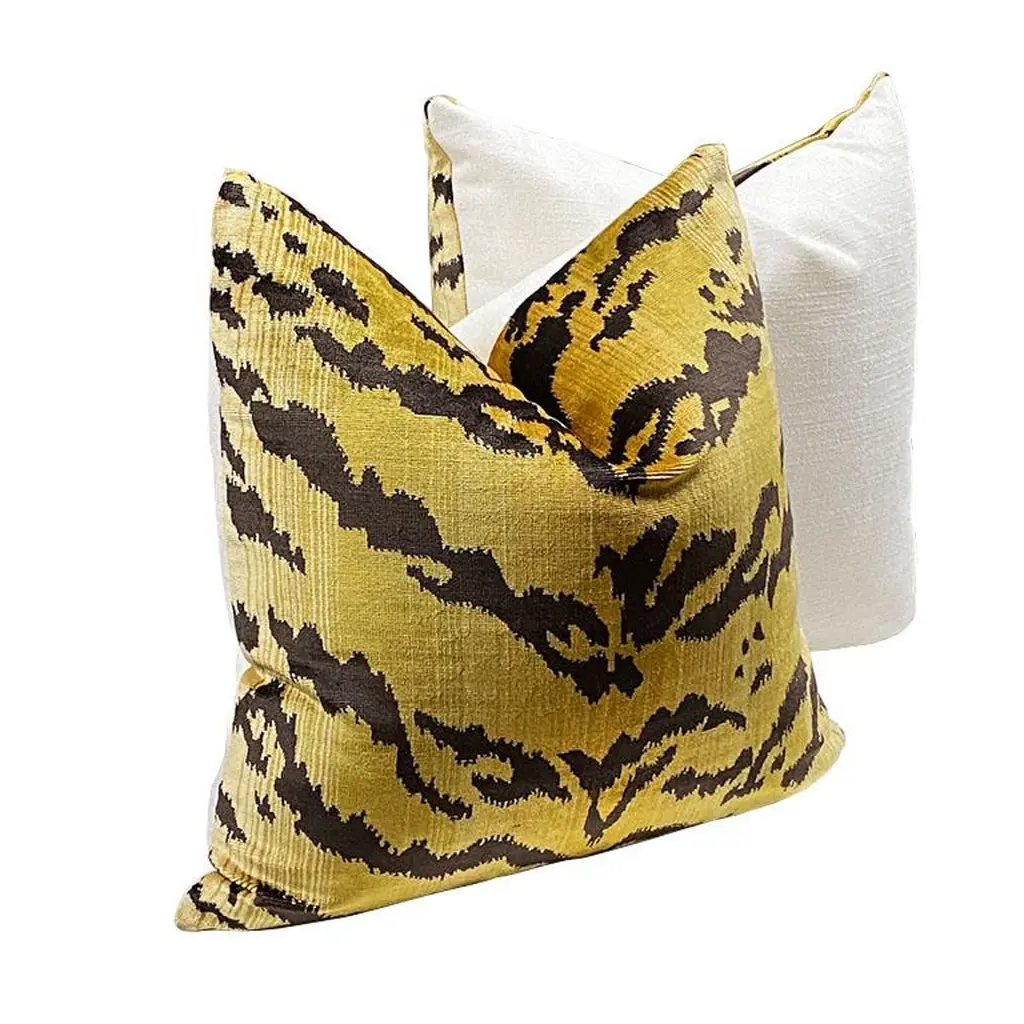 Square Velvet Le Tigre Down Fill Pillow In The Manner Of Scalamandre
