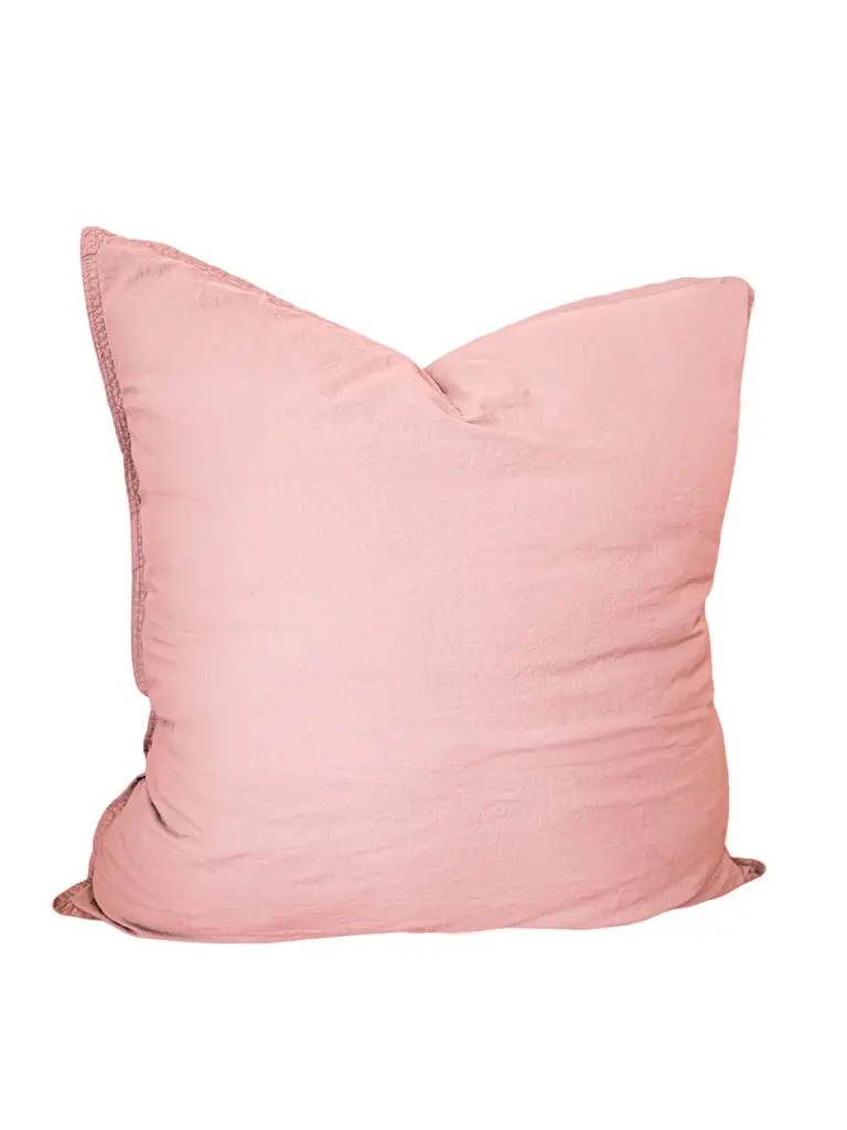 The Stonewashed Cotton Percale Pillow is a cool casual style for everyday use. The fabric is stonewashed to give it a cool vintage look. Self fabric opening on back side. 100% Cotton Made in Portugal. Machine Wash Delicate with like colors. Tumble Dry. Low iron.