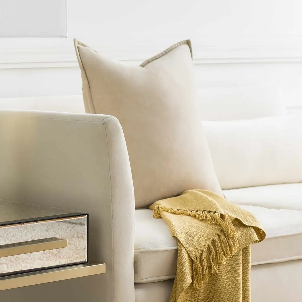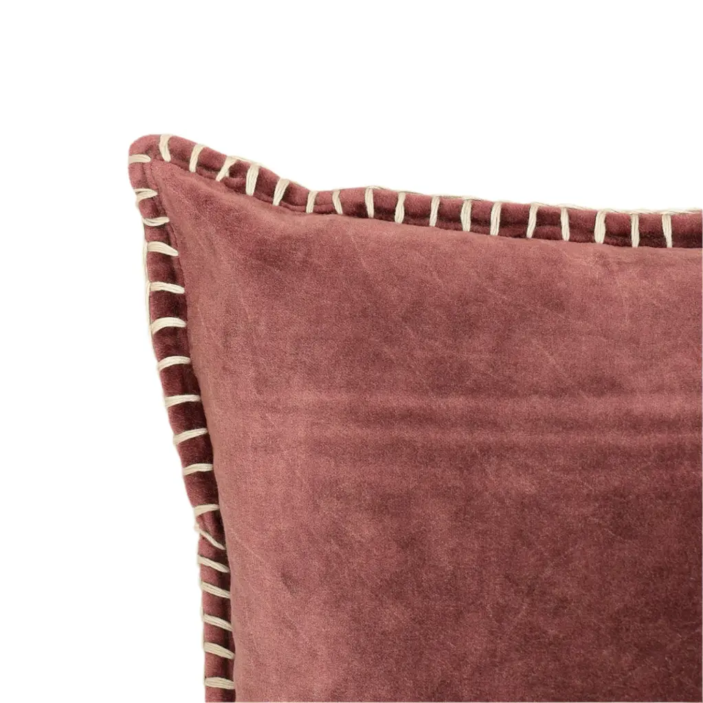 Stonewashed Cotton Velvet Throw Pillow With Decorative Handstiched Edges - Camel