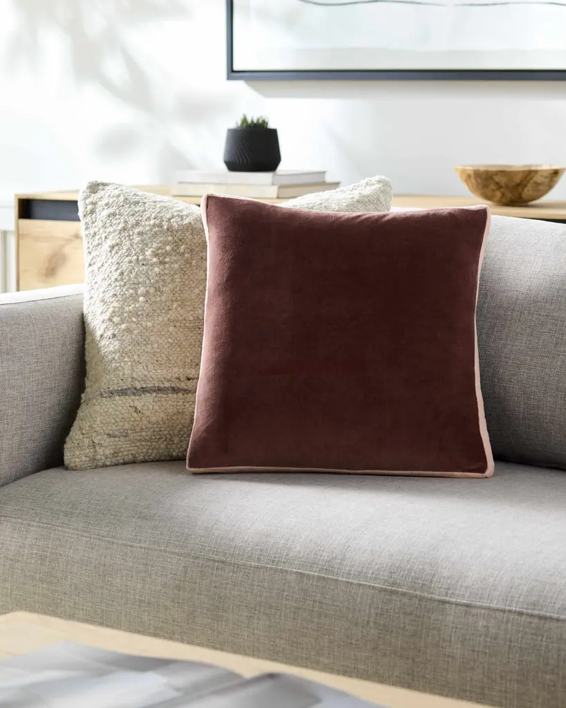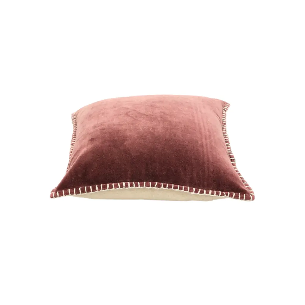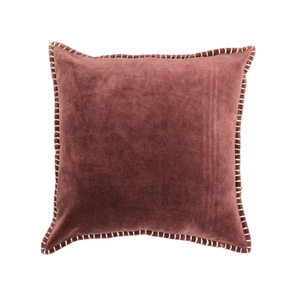 Stonewashed Cotton Velvet Throw Pillow With Decorative Handstiched Edges - Clay