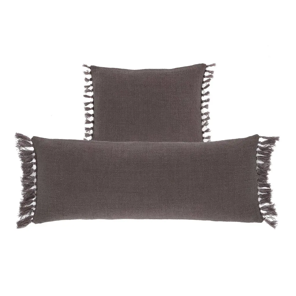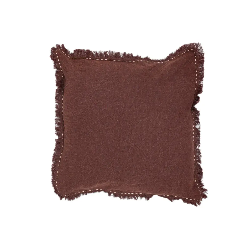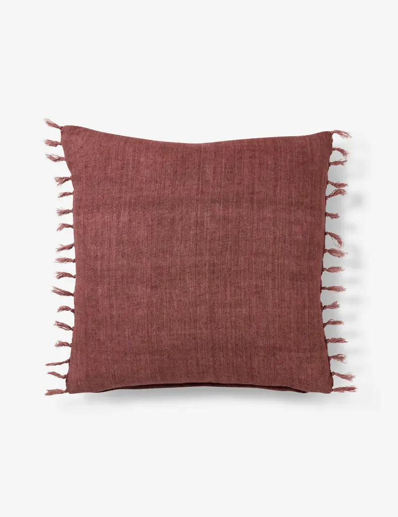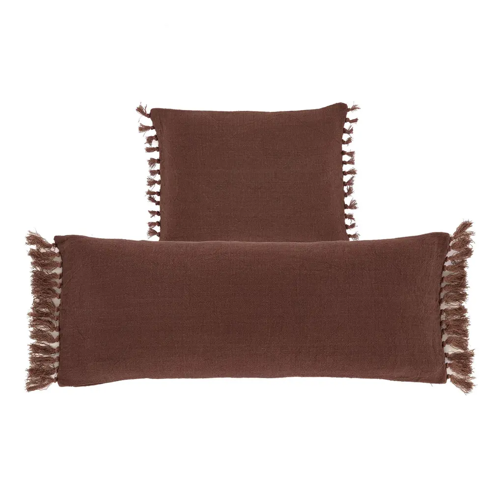 Stonewashed Linen Throw Pillow With Handworked Edges & Fringe - Russet