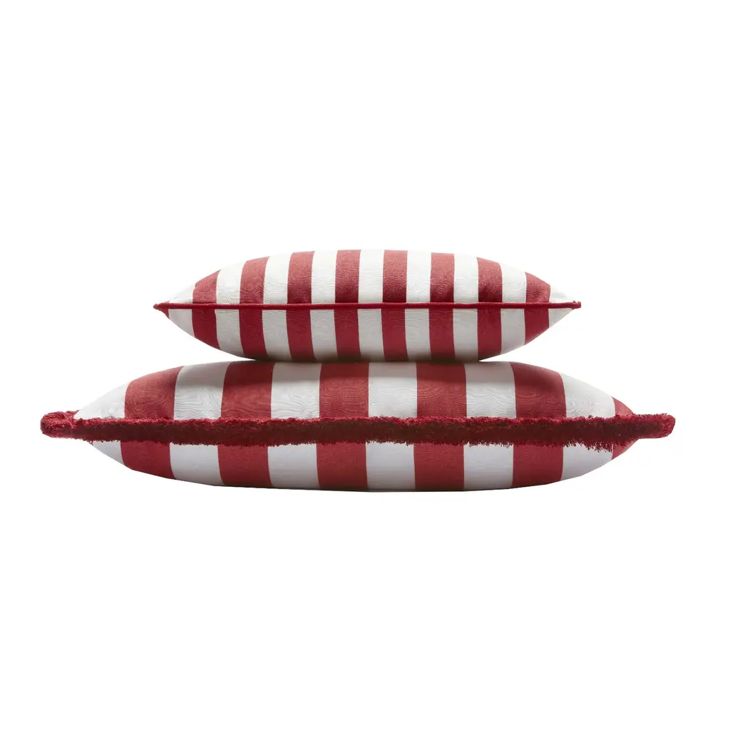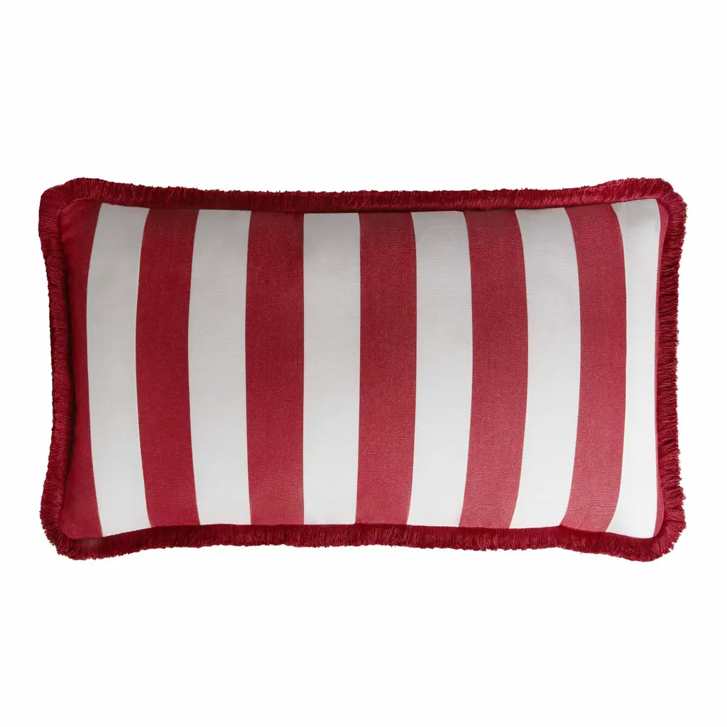 Striped Happy Frame Pillow Outdoor - White & Red - Piping - Water Repellent