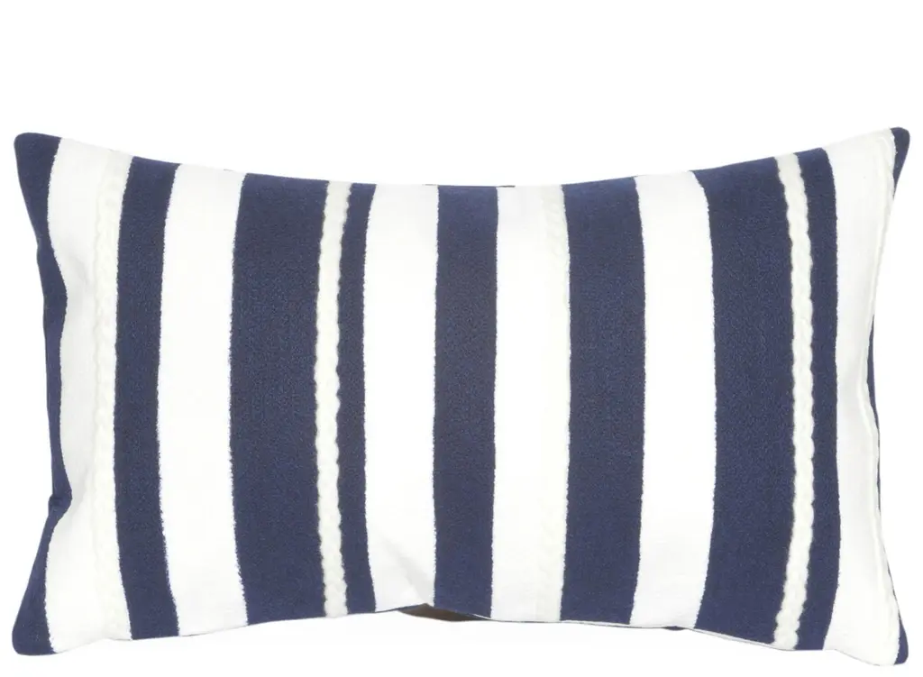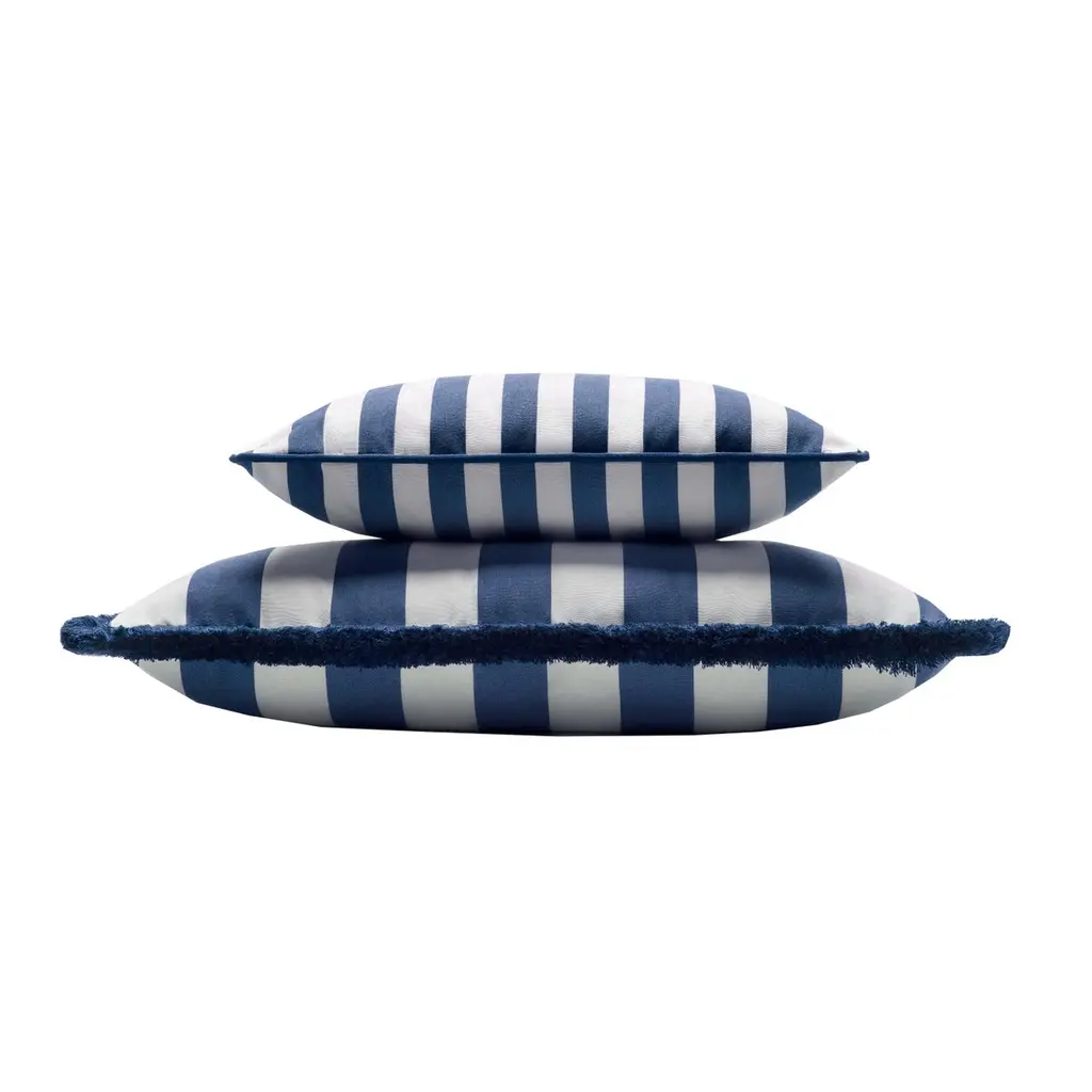 Striped Happy Pillow Outdoor With Fringes White And Blue Water Repellent
