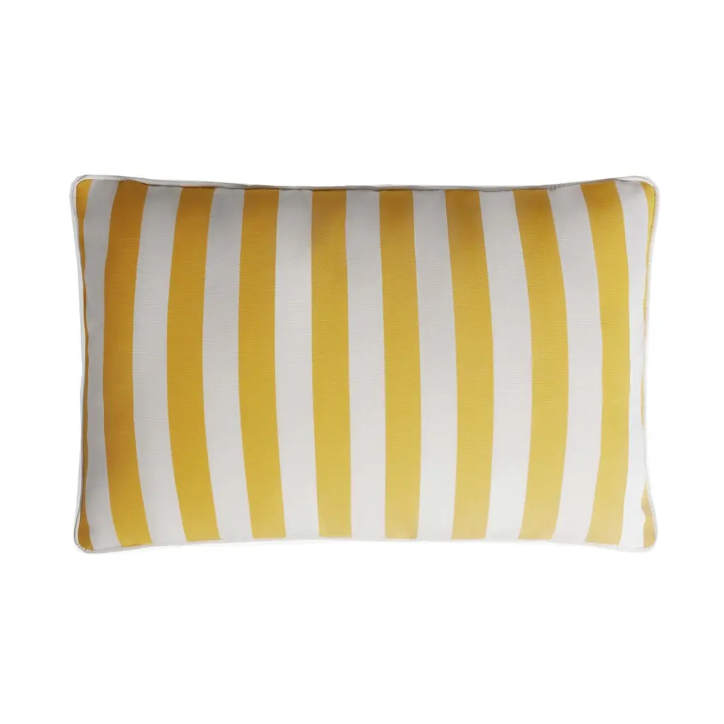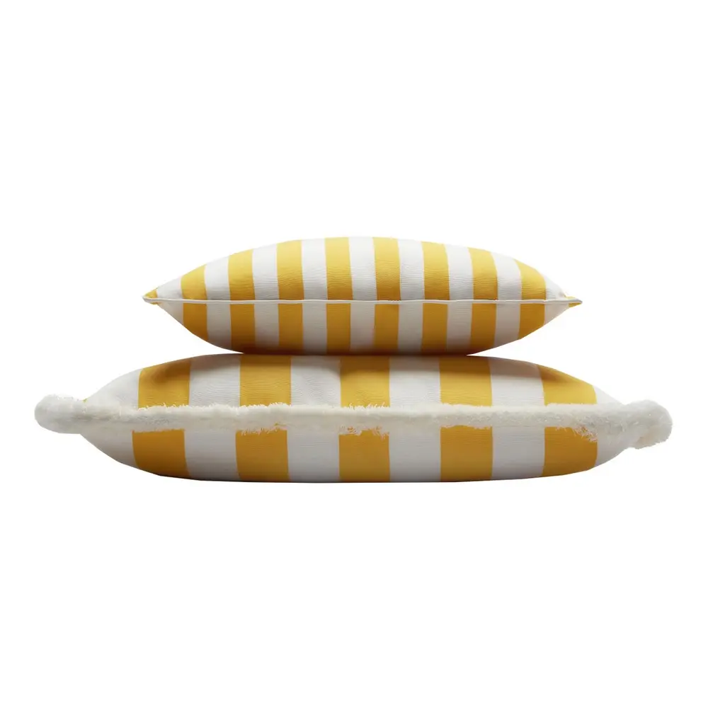Striped Happy Pillow Outdoor With Fringes White And Yellow Water Repellent
