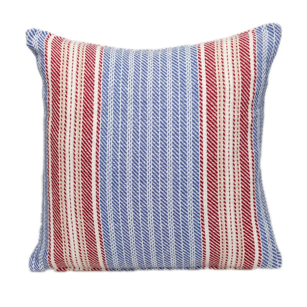 Striped Square Cotton Throw Pillow - 16" - Blue And Red - Blue - 16 X 16
