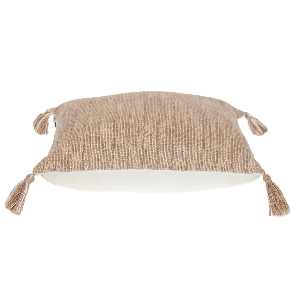 Striped Square Cotton Throw Pillow With Tassels - 18" - Brown And Gray - Brown - 18 X 18