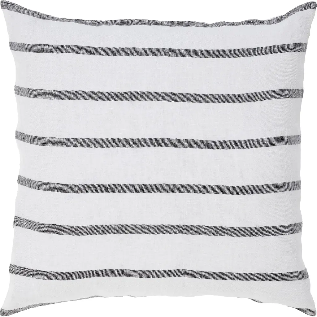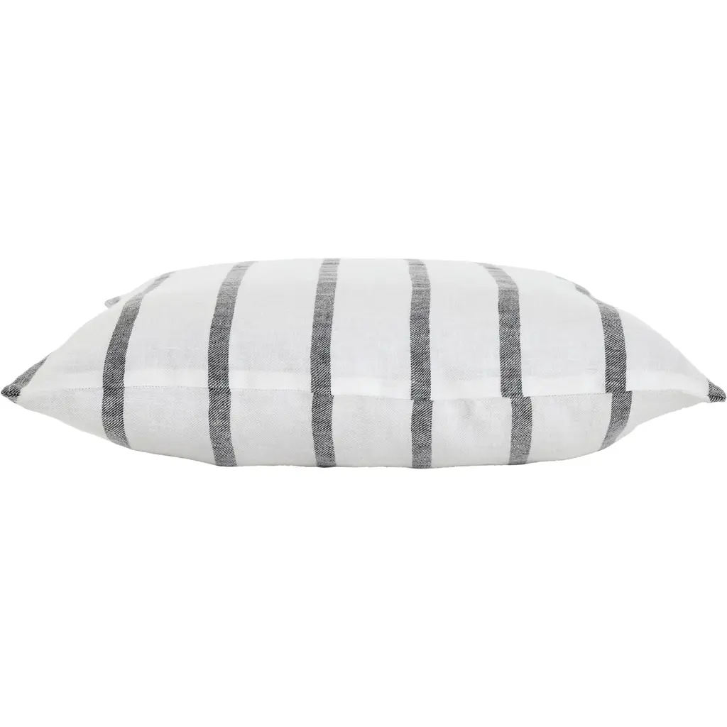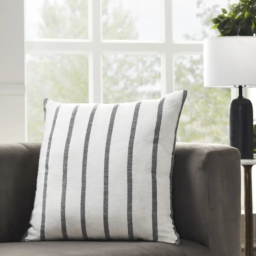 Introduce a touch of understated elegance to your indoor space with our exquisite pillow. This pillow boasts a black-and-white palette that exudes calming neutrality. Its unique long structure, adds a new dimension to your bedroom or living room decor. Finished with a hidden zipper for seamless elegance complements contemporary and classic interiors. Product Features: Color(s): black and white Striped pattern Sewn seam closure with knife edge Hidden zipper Recommended for indoor use only Care instructions: spot clean Dimensions: 22" high x 22" wide Material(s): Shell: linen Filling: feather/down Lining: polyester