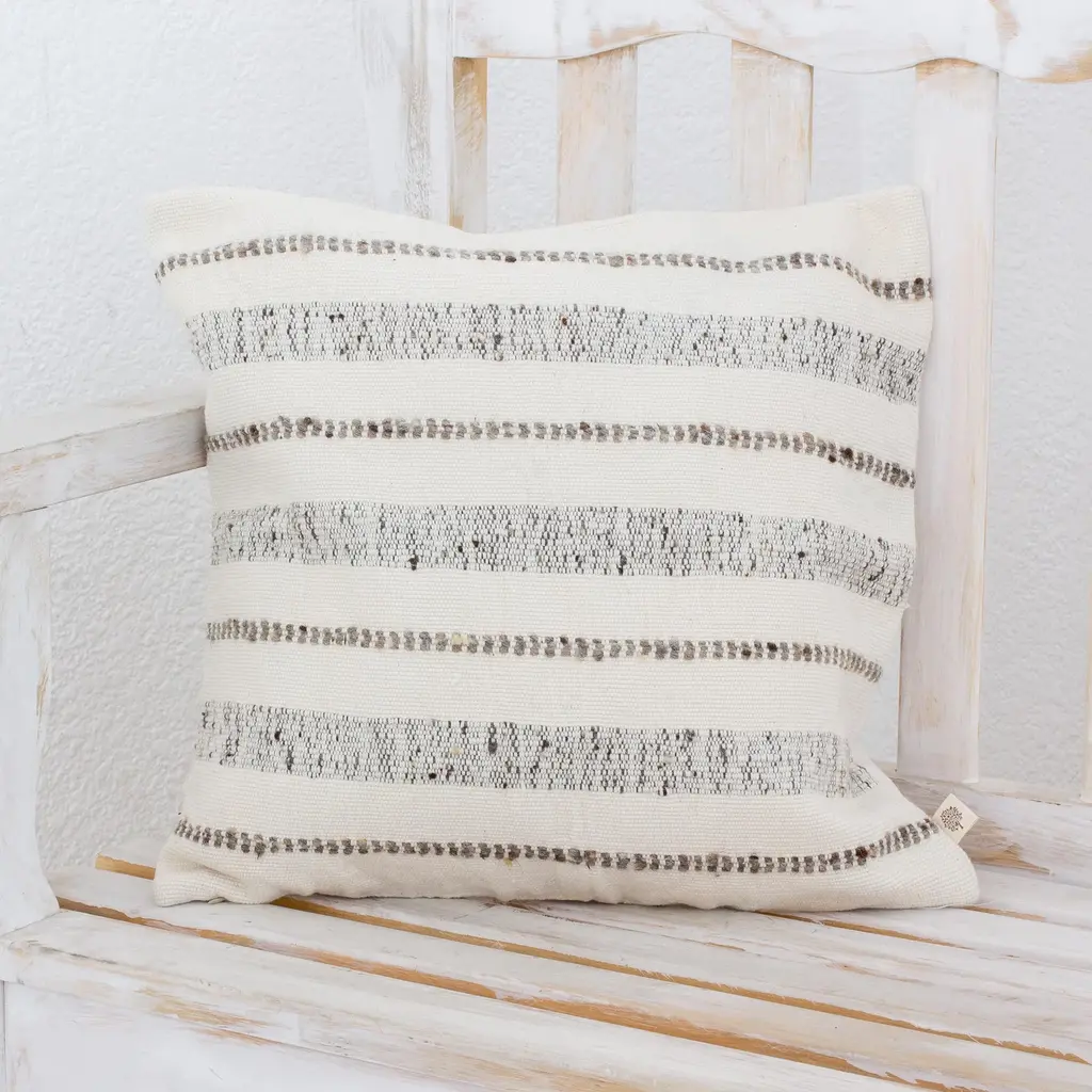 Striped Vintage Scandinavian Wool Fabric Pillow In Cream 60x60 Cm