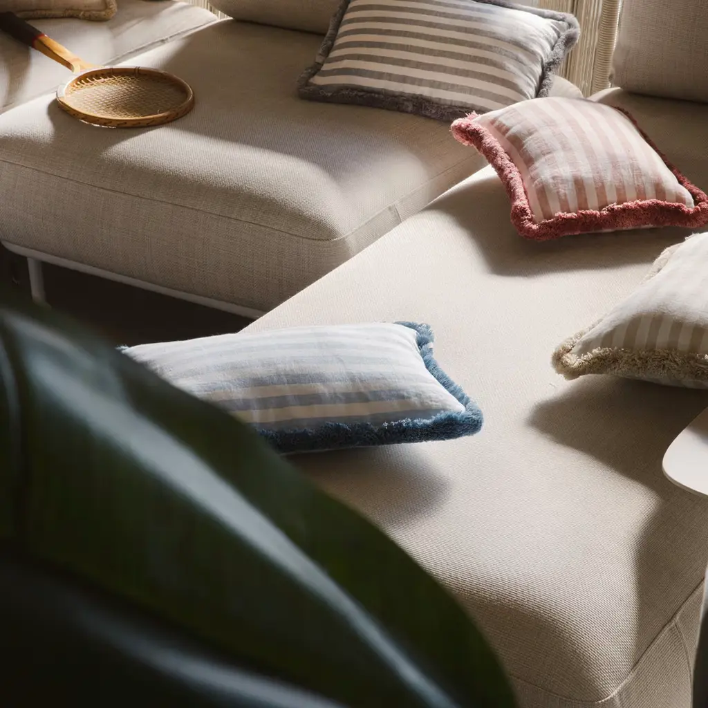 This cushion is the perfect accent piece for an easy style update, it makes a chic accent for any well-decorated home, adding charm to a bed, sofa, or armchair. Crafted of pure Italian linen, refined with cotton fringes, LO Decor Linen collection is available in both plain and striped colors both with its delicate hues and details with understated glamour. Warm colors, exquisite craftsmanship, and elegant materials are the hallmarks of these cushions. Removable cover, dry wash.