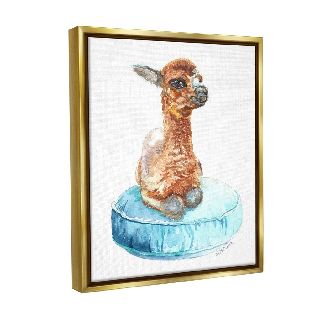 Elevate your home or office to the next level with Stupell Framed Floating Canvas Wall Art. Our premium hand-stretched canvas is mounted securely into a sturdy lightweight frame. The museum-style gap between the wrapped canvas and the box frame gives the illusion of floating artwork. Stupell Wall Art is made in the USA.Features: Dimensions: 17 x 1.7 x 21 Frame, 16 x 1.5 x 20 Canvas ArtFloating Frame Canvas Products are available in sizes 17"x21" and 25"x31". All Floating Frame Canvas Products have a 1.7" Depth.Wall Art is Ready to Hang with Hardware Free Hanging. No Installation required. For Easy Set Up Lean or Layer Artwork on Shelf or Against Wall. Artwork is Permently Fixed into the Frame.Our elevated 1.7" Thick Floating Frame is the perfect complement to our canvas style Wall Art. We use only the highest quality inks in house with industry leading printing solutions. Canvas is hand stretched over a durable wood foundation and then mounted securly into a Modern Box Frame. Made in the USA.Artwork Relates To: Animal, Llama, , Farm, Goat, Baby Animal, Pillow, CushionDesign by Jennifer Redstreake