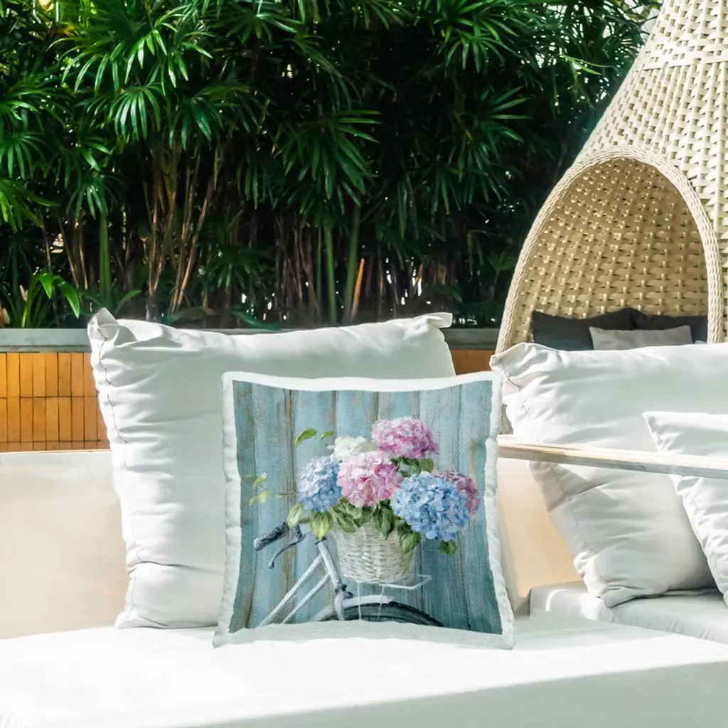 Stupell Industries Cape Cod Bicycle Flowers Outdoor Decorative Throw Pillow, 18 X 18