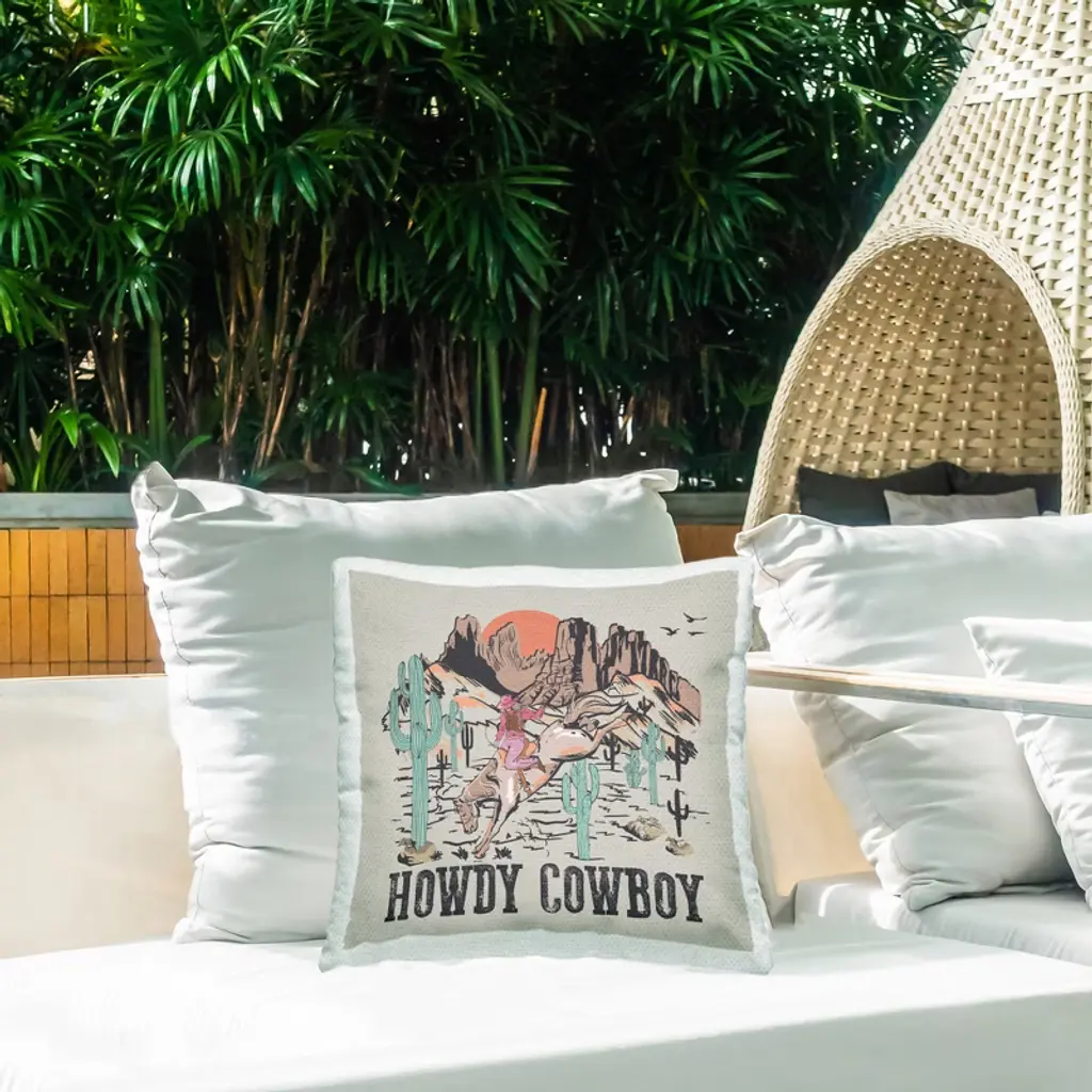 Stupell Industries Howdy Cowboy Vintage View Outdoor Decorative Throw Pillow, 18 X 18