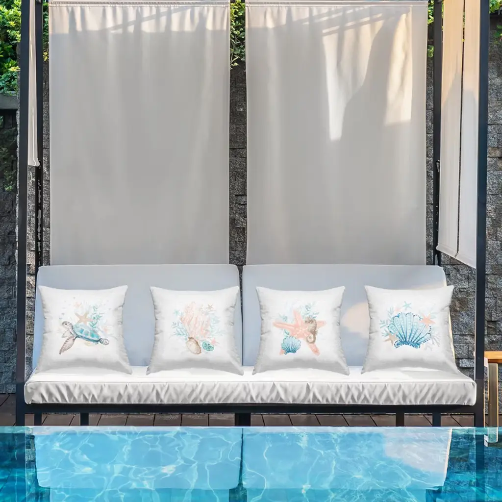 Stupell Industries Pastel Sea Life Coral Reef, 4Pc Outdoor Pillow Set, 18x18 Each