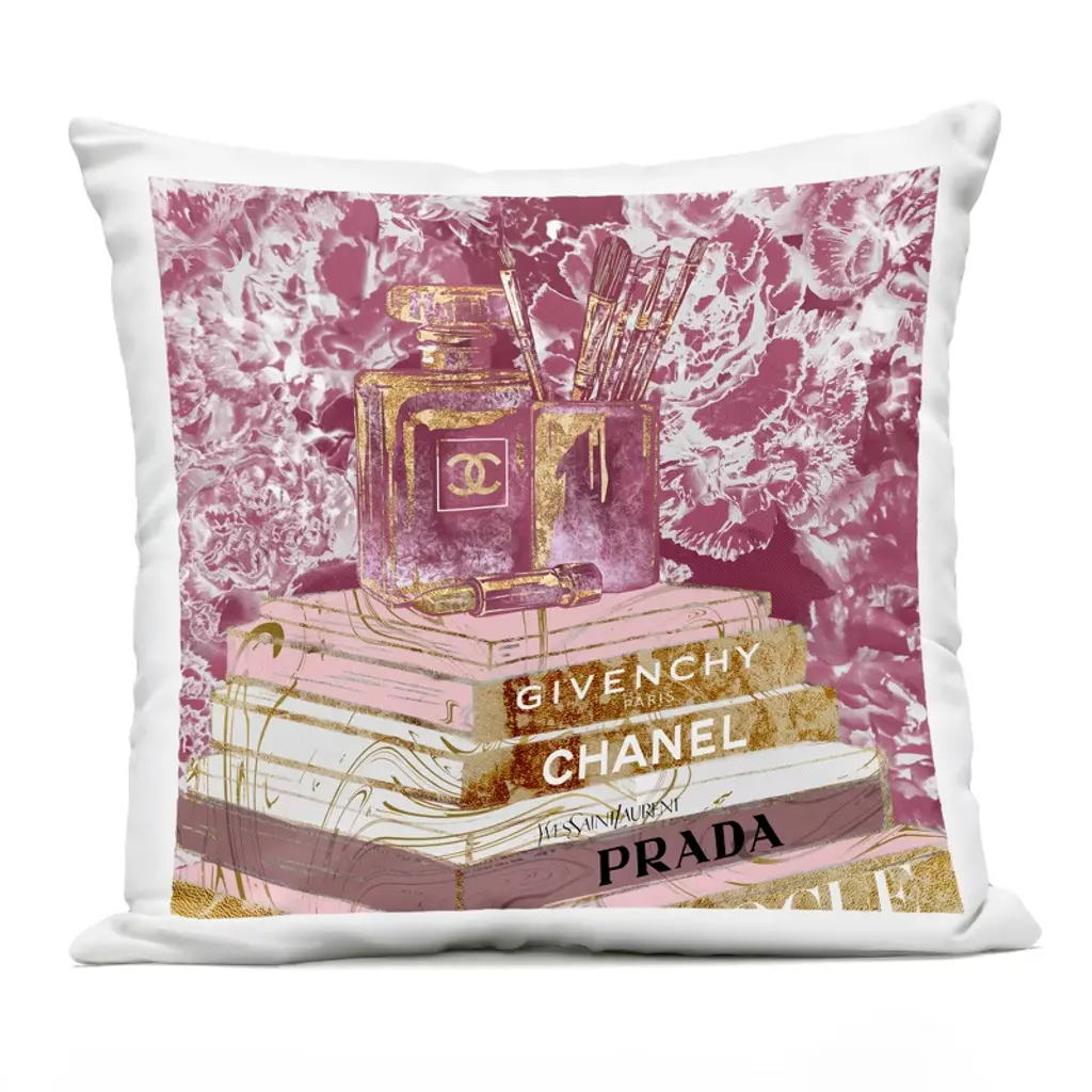 Stupell Industries Pink Perfume Blossoms Fashion Glam Books Outdoor Decorative Throw Pillow, 18 X 18