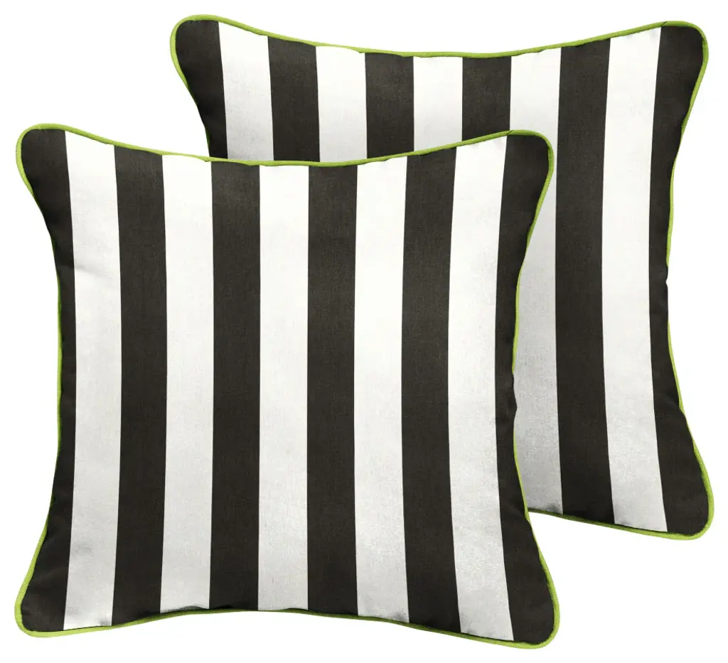 Offer character and personality to any seating area with this set of two outdoor square pillows. Filled with 100 percent recycled fiber, these pillows remain soft and durable through consistent use to ensure maximum comfort. The exteriors are UV and fade resistant, and protect against fading and mildew damage typically caused from use outdoors.