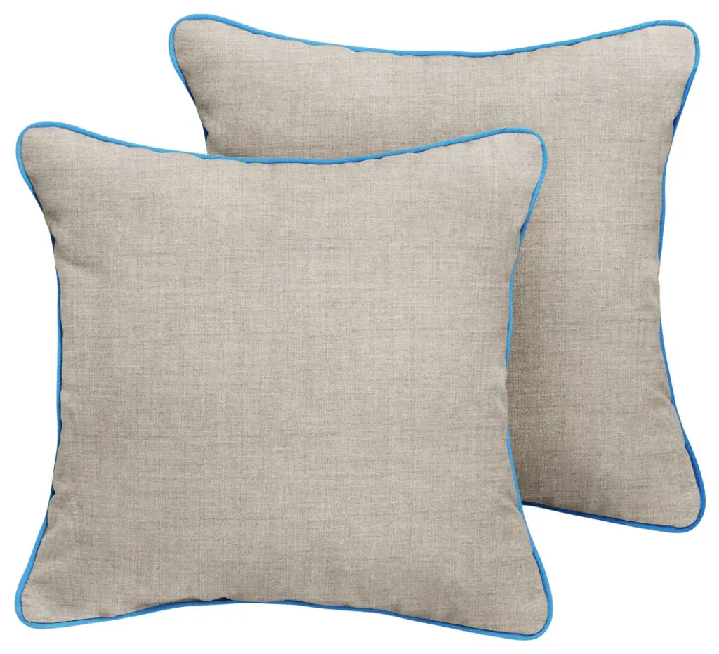 Sunbrella Cast Silver/canvas True Blue Outdoor Corded Pillows, Set Of 2, 16x16