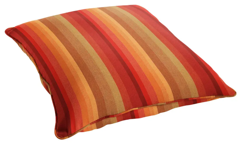 Add an extra seat and a whole lot of style to your space with this adorable outdoor floor pouf! Featuring a beautiful stripe fabric in a rich, orange hue, this pouf will instantly update your porch or patio and help your guests feel comfortable. Crafted out of a performance material right here in North America, this floor pouf is built to withstand sun, stains and moisture so all you have to do is sit back, and relax! Sunbrella is founded on the belief that fabrics should be both beautiful and functional. We began in the 1960s with the challenge of creating an awning canvas with a substantially longer lifespan than cotton. Sunbrella has become widely adopted for shade structures, marine canvas and upholstery fabric for both outdoor and indoor applications.Our textiles are made with close attention to design detail, and engineered with robust performance characteristics that provide resistance to fading and degradation from sunlight and chemical exposure. The fabric is tactile yet durable, has industry-leading environmental characteristics, is easy to care for and offers long life - wherever it''s used.No Sunbrella manufacturing facility in the world sends waste to landfills. A result of our focus on efficiency, this monumental achievement allows Sunbrella to lead by example, putting sustainability into practice every day across the globe. Our unique coloring process not only makes Sunbrella fabrics fade-resistant, it also conserves more water than conventional dyeing processes. At Sunbrella we believe it''s important to preserve the environment around our facilities. We work to conserve the plant and animal life that is native to the area and encourage our employees to plant gardens designed to provide fresh food and nourish local wildlife.We stand behind our fabrics with a guarantee that''s the best in the industry: a 5-year limited warranty for upholstery. This warranty protects the original purchaser of Sunbrella fabric. This warranty protects against Sunbrella fabric becoming unserviceable due to color or strength loss from normal usage and exposure conditions, including sunlight, mildew and atmospheric chemicals.• • • • • • • Made in North America•